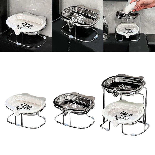 Ruioomeep Keramik Seifenschale - Doppelschicht Mit Ablauf Weiß