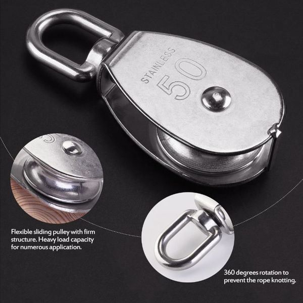 Diese Edelstahl-Seilrolle ist ein echtes Kraftpaket! Aus hochwertigem 304 Edelstahl gefertigt, komplett rostfrei und super langlebig. Es gibt zwei Größen: Die kleinere wiegt 45g und hält bis zu 35kg aus, die größere mit 336g schafft satte 400kg! Die polierten Oberflächen sehen nicht nur gut aus, sondern sorgen auch für ultra-glatten Lauf. Das coole Feature: Die um 360 Grad drehbare Mutter und die zwei kugelgelagerten Rollen verhindern, dass sich das Seil verdreht oder verheddert. Perfekt für Wäscheleinen, Fitnessgeräte, Boote, Kräne oder was dir sonst noch so einfällt. Kompakt und leicht, aber unglaublich stark - damit machst du das Heben und Ziehen schwerer Gegenstände zum Kinderspiel!