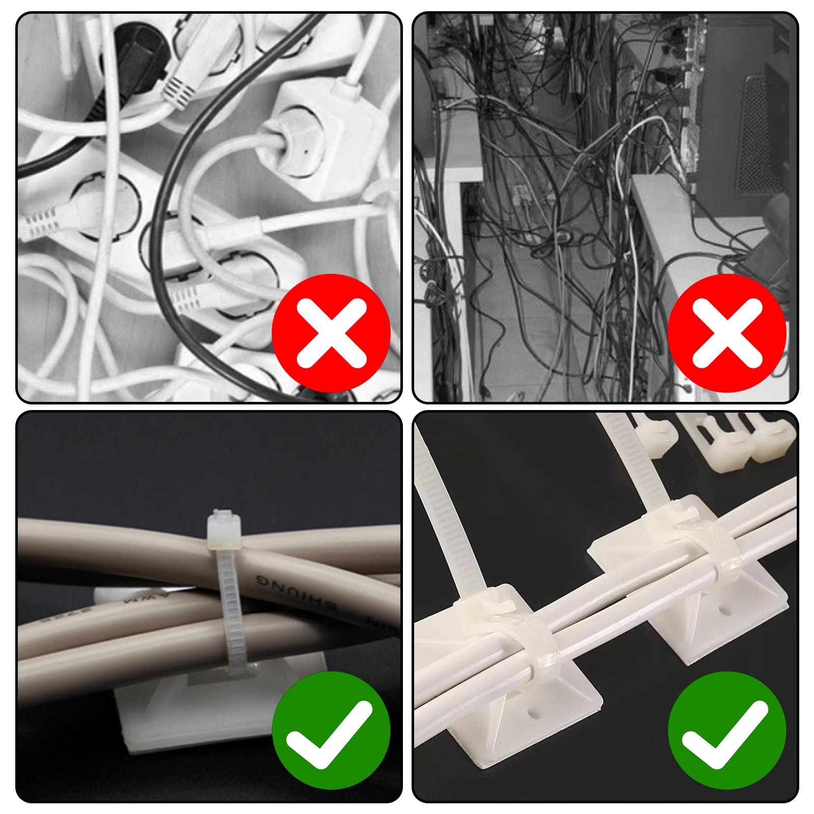 Endlich Ordnung im Kabelchaos! Dieses Set mit 100 selbstklebenden Halterungen und 200 Kabelbinder (120mm + 150mm) bringt Struktur in jede Werkstatt, jedes Büro oder Zuhause. Die Halterungen aus stabilem PE-Material kleben stark auf sauberen, trockenen Flächen – ohne Bohren. Falls nötig, könnt ihr sie auch verschrauben. Einfach Trägerpapier abziehen, festdrücken und die Kabelbinder durchstecken. Die Halterungen sind korrosionsbeständig und bleiben auch langfristig in Form. So halten Kabel, Leitungen und Drähte da, wo sie sollen. Schwarz oder weiß – wählbar nach eurem Geschmack. Praktisch, langlebig und super einfach zu montieren!