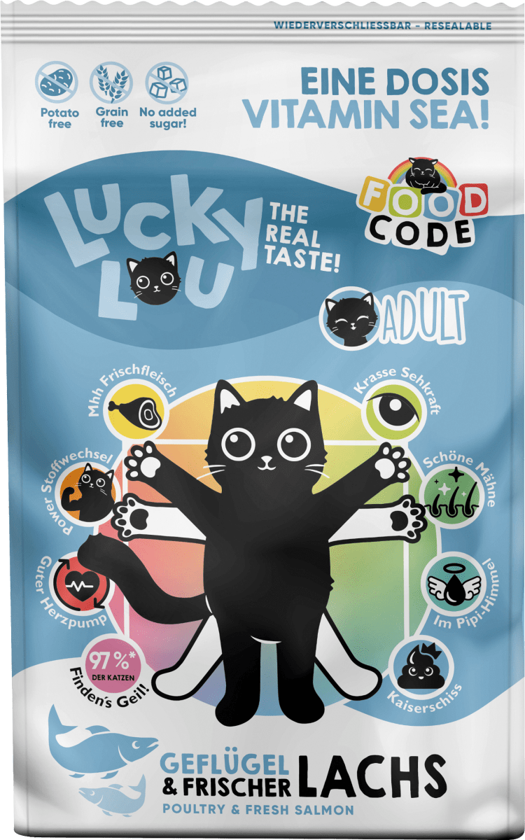 Deine Katze verdient das Beste! Lucky Lou Katzenfutter ist speziell für ausgewachsene Katzen entwickelt - getreidefrei, ohne Zuckerzusätze und Gentechnik. Die Sensitive Sorte mit Rind und Pferd ist super bekömmlich und perfekt für Mischfütterung. Enthält wichtige Nährstoffe wie Taurin für die Sehkraft, Omega-3 Fettsäuren für schönes Fell und Vitamin B für den Stoffwechsel. Gemeinsam mit Tierärzten entwickelt und von 97% der Testkatzen geliebt. Ohne Tierversuche, mit Frischfleisch und hochwertigem Protein. Die optimale Kibbelgröße für erwachsene Katzen. Dein Stubentiger wird's lieben - für eine glückliche und gesunde Katze!