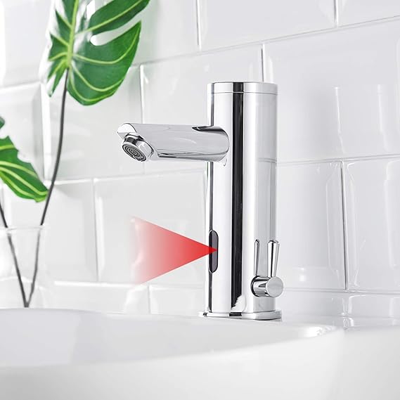 Wow, dieser Sensor-Wasserhahn ist pure Zukunftstechnologie für dein Badezimmer! Einfach die Hände in den Erfassungsbereich (ca. 15cm) halten, und schon fließt das Wasser - komplett berührungslos und super hygienisch. Die Temperatur lässt sich stufenlos zwischen 0-55°C einstellen, und der wabenförmige Sprudler sorgt für ein weiches, spritzerfreies Strahlbild. Aus hochwertigem Messing mit Chrom-Galvanisierung gefertigt - rostfrei und langlebig. Die Installation ist dank Standard-3/8\-Anschlüssen und zwei 55cm Schläuchen super einfach. Läuft mit 4 AA-Batterien (nicht im Lieferumfang). Perfekt fürs Gäste-WC oder Familien-Bad - spart Wasser und sieht dabei noch mega stylisch aus! Absolut empfehlenswert für alle, die Wert auf Hygiene und Modernität legen!