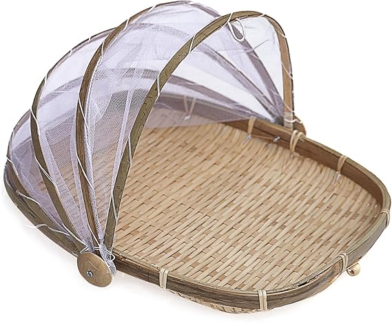 Genießt du entspannte Stunden im Freien, aber Insekten versauen dir den Appetit? Dieser handgeflochtene Bambuskorb mit Zeltabdeckung hält lästige Besucher fern und sieht dabei noch stylisch aus!