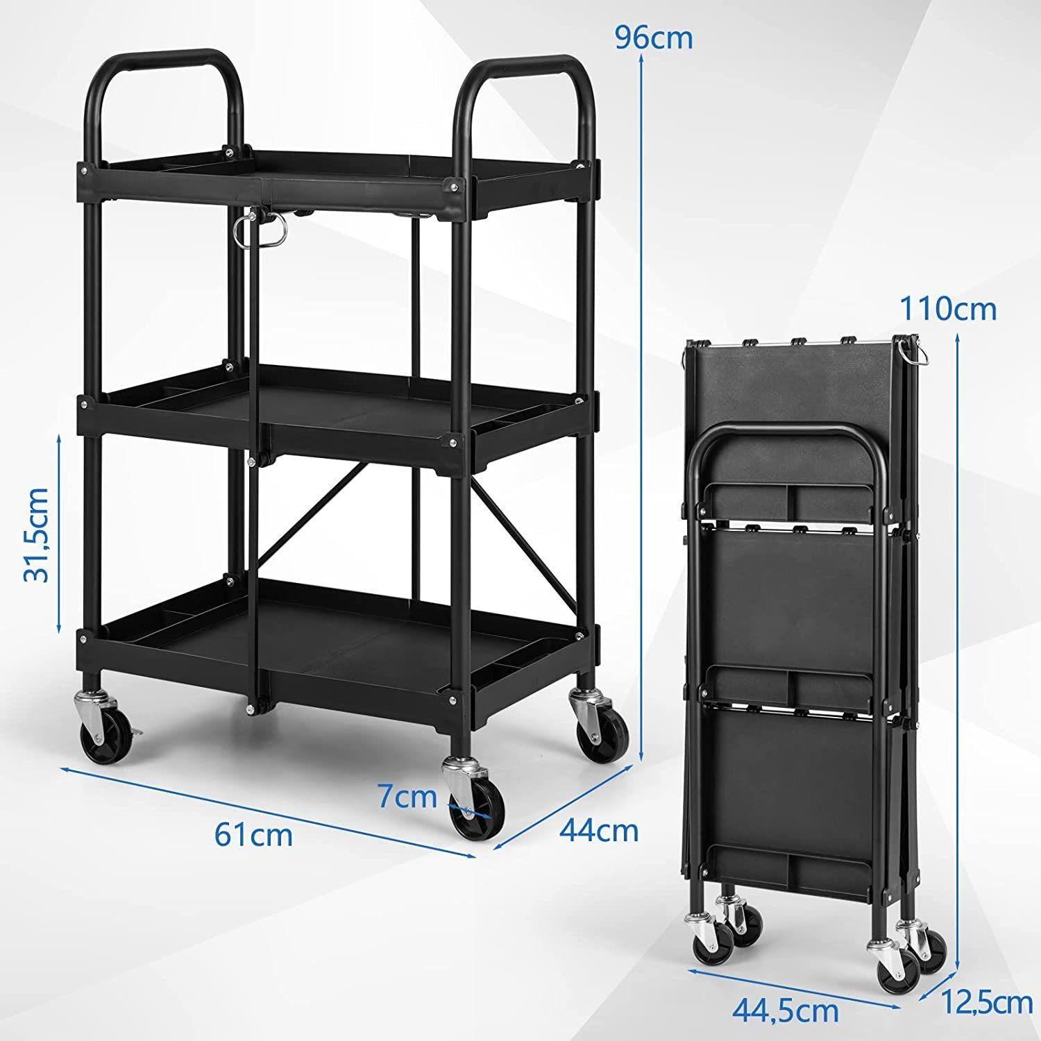 Ordnung muss sein - und mit diesem Werkstattwagen von COSTWAY hast du alles im Griff! Drei stabile Regale aus PP-Material bieten jede Menge Stauraum für Werkzeuge, Teile oder Küchenutensilien. Jedes Regal trägt bis zu 75kg, also insgesamt 225kg - da kannst du richtig was draufpacken! Die 4 Räder (zwei mit Bremsen) rollen superleicht, auch auf unebenen Böden. Die doppelten Griffe geben dir volle Kontrolle beim Manövrieren. Maße: 80x41x97cm - groß genug für alles, aber nicht zu klobig. Die 3cm hohen Kanten verhindern, dass was runterfällt. Ob in der Garage, Werkstatt, Lager, Küche oder Büro - dieser Wagen ist überall einsetzbar. Einfach montiert mit beiliegender Anleitung. Aus Aluminium und PP - rostfrei und langlebig. Endlich alles ordentlich und mobil! Perfekt für Handwerker, Hobby-Bastler oder jeden, der gerne Ordnung hält.