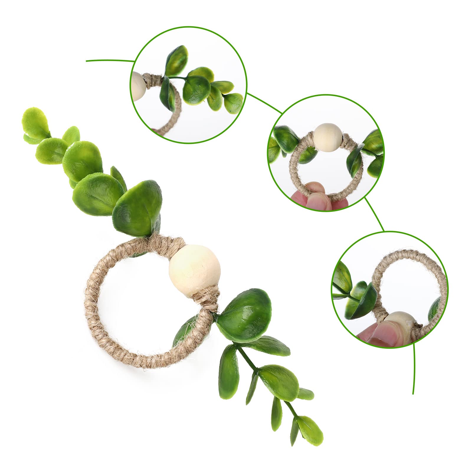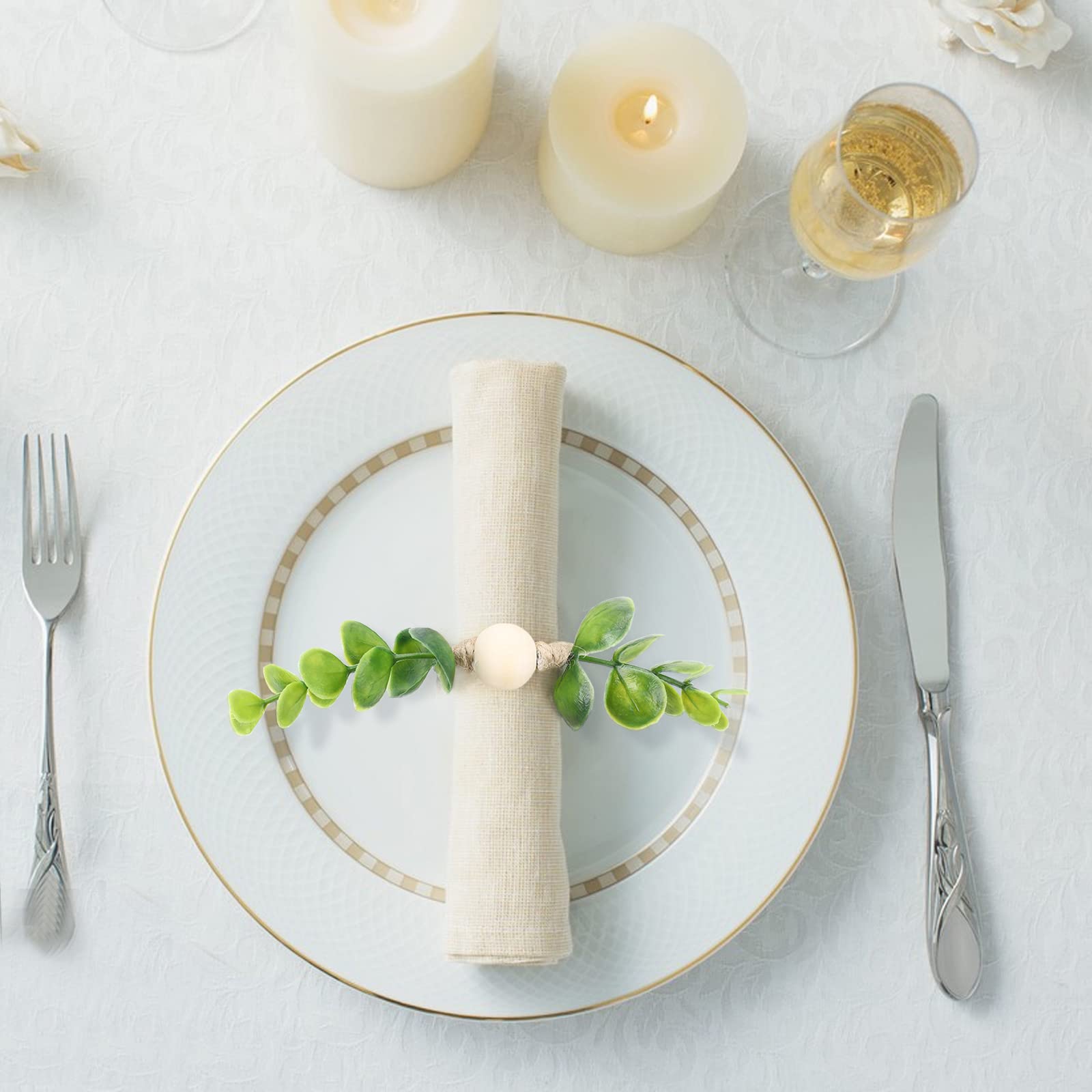 Verwandle deinen Esstisch in eine herbstliche Wohlfühloase! Diese 12 Serviettenringe im Bauernhaus-Stil mit Eukalyptus, Holzperlen und dekorativen Beeren bringen sofort Landhaus-Charm auf deine Tafel. \\n\\nJeder Ring hat nen Innendurchmesser von 4,5 cm - passt also für die meisten Servietten. Die Eisen-Draht Konstruktion ist super stabil aber trotzdem leicht. Die natürlichen Elemente sehen täuschend echt aus! \\n\\nPerfekt für: \\n• Thanksgiving Dinner \\n• Weihnachtsfeiern \\n• Herbsthochzeiten \\n• Halloween Parties \\n• Familientreffen \\n• Tägliche Tischdekoration \\n\\Einfach zu reinigen - einfach mit nem feuchten Schwamm abwischen. Die frischen Herbstfarben (Grün, Orange, Rot) machen jede Tafel zum Highlight! \\n\\nDeine Gäste werden begeistert sein - versprochen! Mach aus jedem Essen ein besonderes Ereignis.