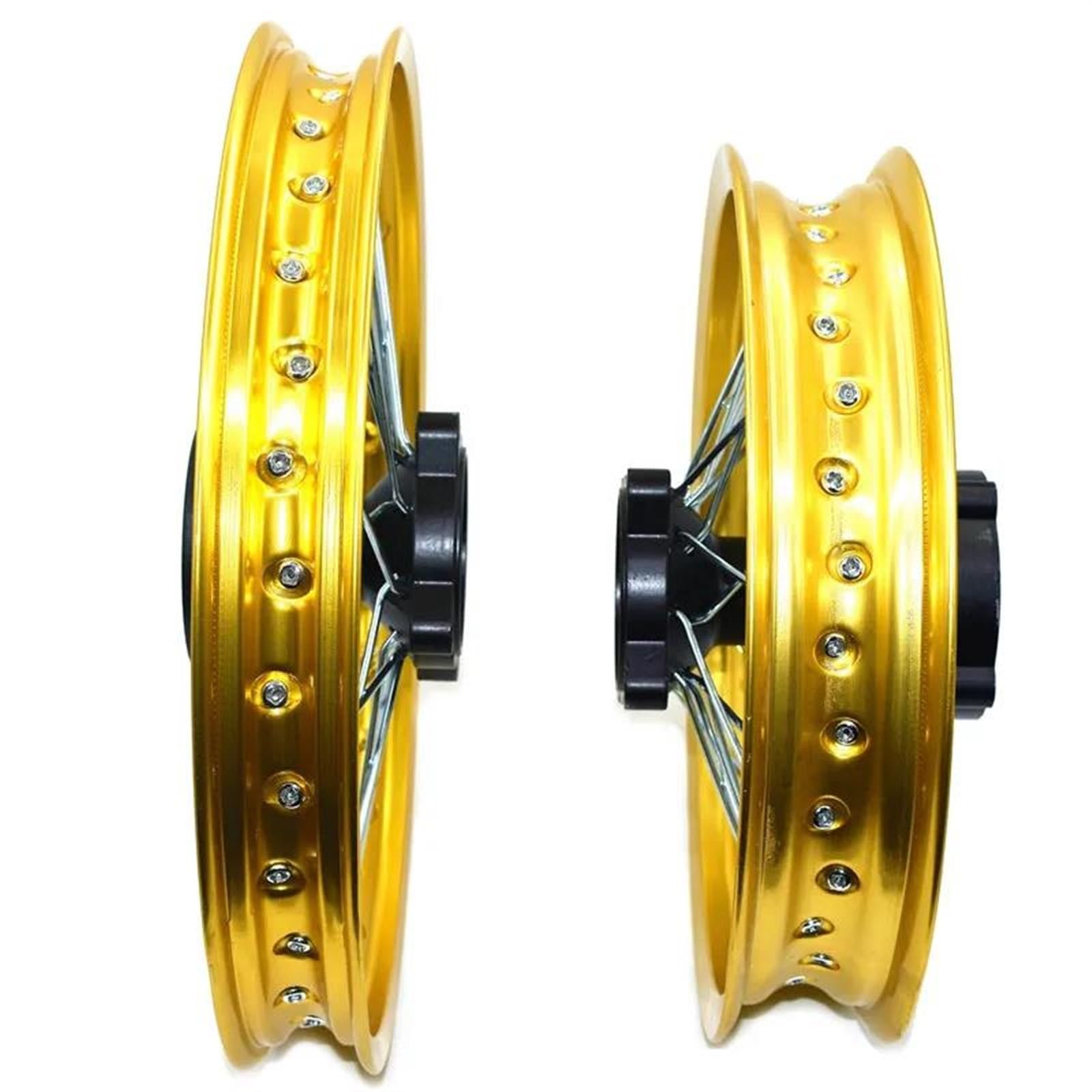 Ready für mehr Grip auf dem Trail? Dieses Felgen-Set bringt dein Dirt Bike auf Vordermann! Aus 6061-T6 Aluminium CNC-gefräst - richtig stabil und dabei super leicht. Mit 1,85x12 Zoll vorne und hinten perfekt für KLX, CRF, Kayo und BSE Pit Bikes. Die Nabe gibt's in 6 coolen Farben: Schwarz, Blau, Rot, Gold, Silber oder Grün - da findest du garantiert was zu deinem Bike passt! Achslöcher für 12mm oder 15mm Achsen, also check vorher was du brauchst. Die eloxierte Oberfläche rostet nicht und hält auch bei schlimmstem Matsch stand. Einfach mit feuchtem Tuch abwischen und schon sehen sie aus wie neu. Aber Achtung: Montage ist Profi-Sache! Wenn du dir nicht sicher bist, lieber in die Werkstatt damit. So machst du aus deinem Pit Bike eine echte Offroad-Maschine, die auch auf rauesten Trails nicht schlapp macht!