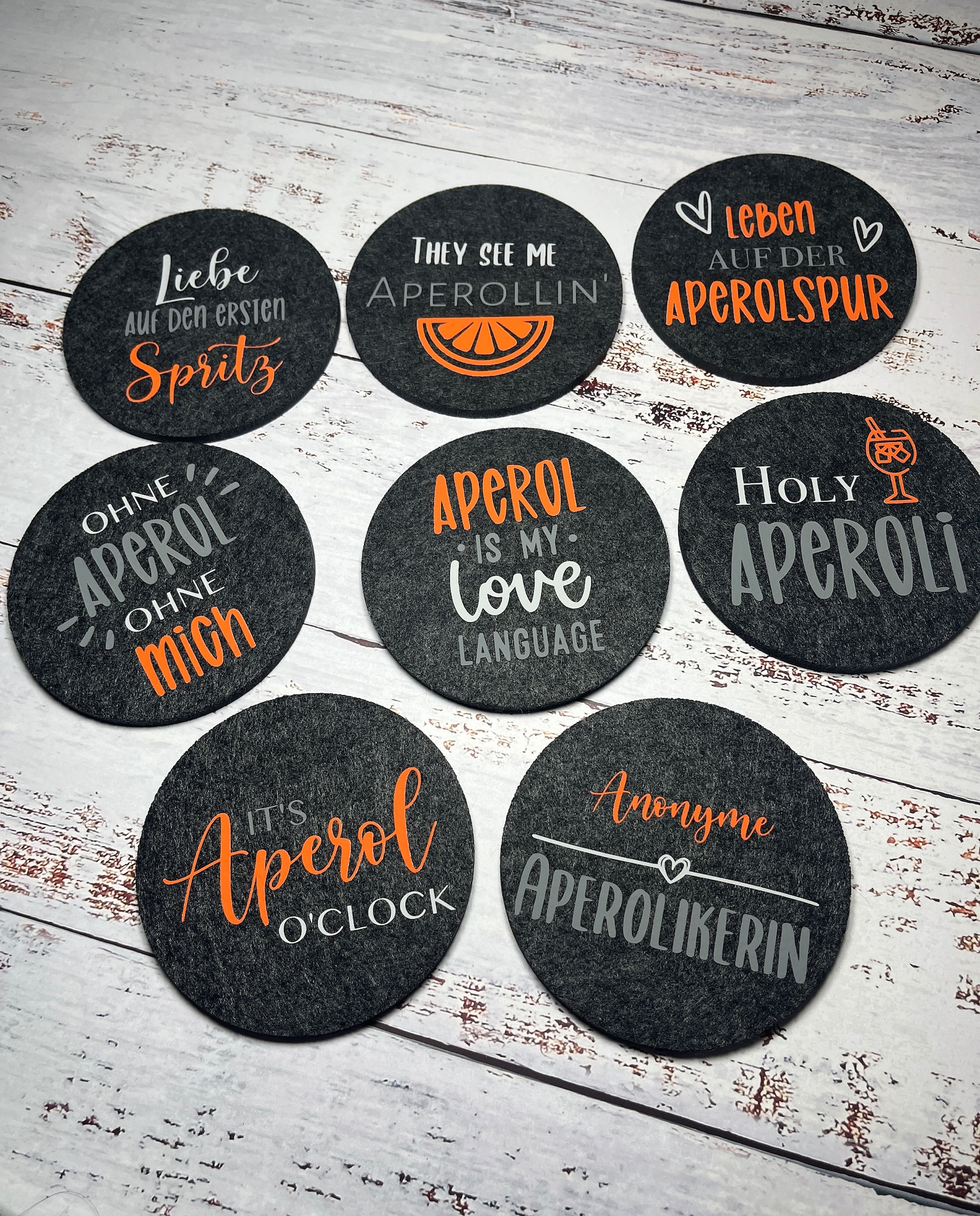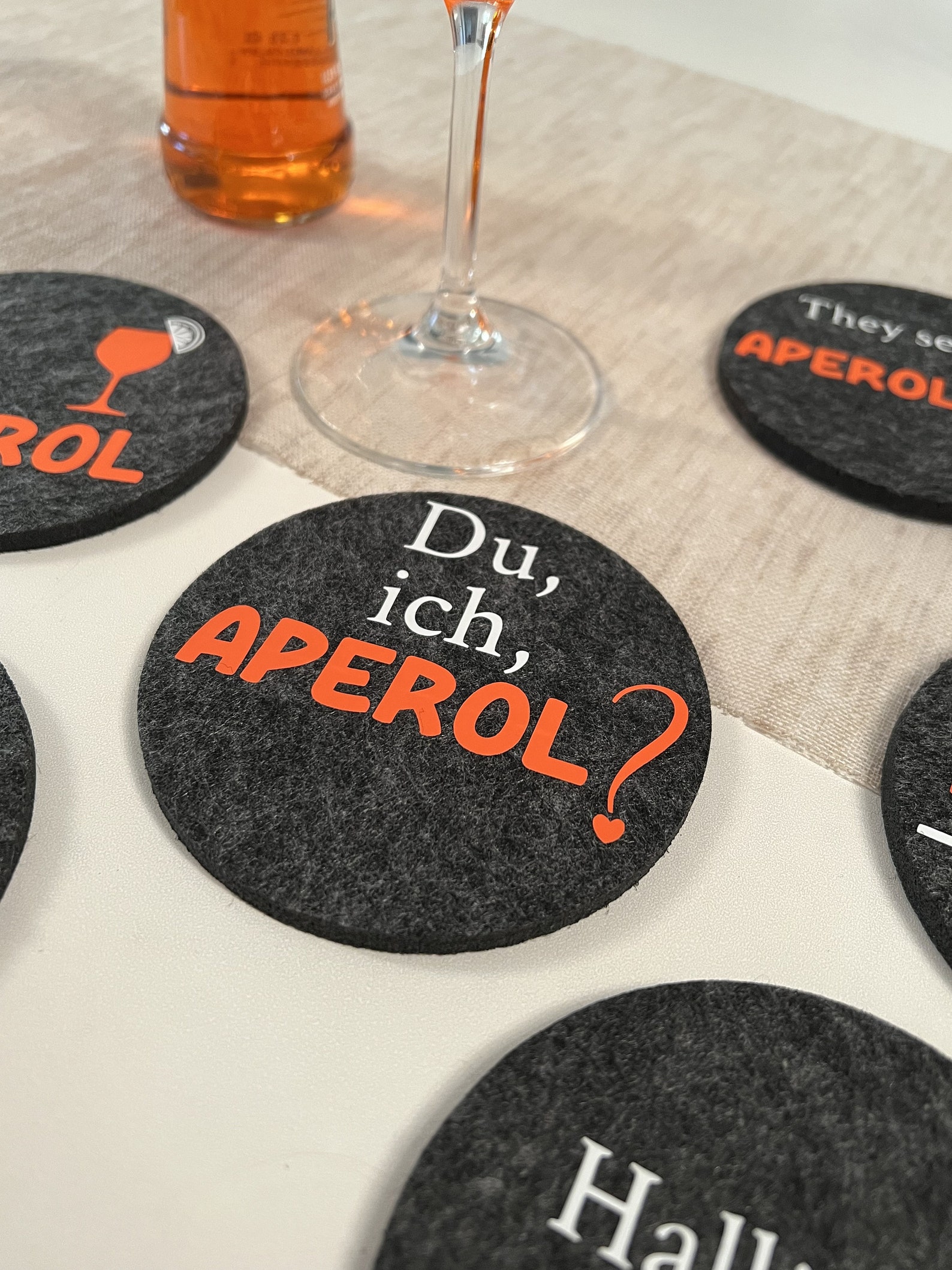 • Aperol Spritz Untersetzer Set - 10 Filzuntersetzer + 5 Glasstrohhalme