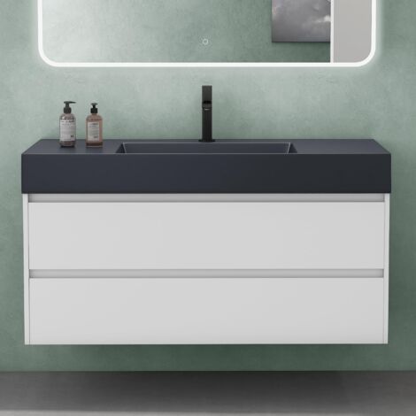 Boah, dieses Waschtisch-Set von Mai & Mai sieht nicht nur super edel aus, sondern ist auch mega praktisch! Mit 120x48x63 cm hat der Unterschrank genau die richtige Größe für die meisten Badezimmer. Das Waschbecken ist aus robustem Mineralguss in Anthrazit - sieht nicht nur klasse aus, sondern ist auch kratzfest und langlebig. Die beiden Schubladen haben diese coole Soft-Close Funktion, das heißt sie fallen nicht einfach zu, sondern schließen ganz sanft. Besonders clever: Die obere Schublade hat ein U-förmiges Design, damit die Abflussrohre Platz haben. Die Aufhängung ist verstellbar, sodass du alles genau ausrichten kannst. Und weil das Waschbecken etwas übersteht, läuft kein Wasser in den Schrank. Montage ist relativ einfach, nur die Armatur musst du separat besorgen. Einfach ein richtig hochwertiges Set für ein modernes Badezimmer!