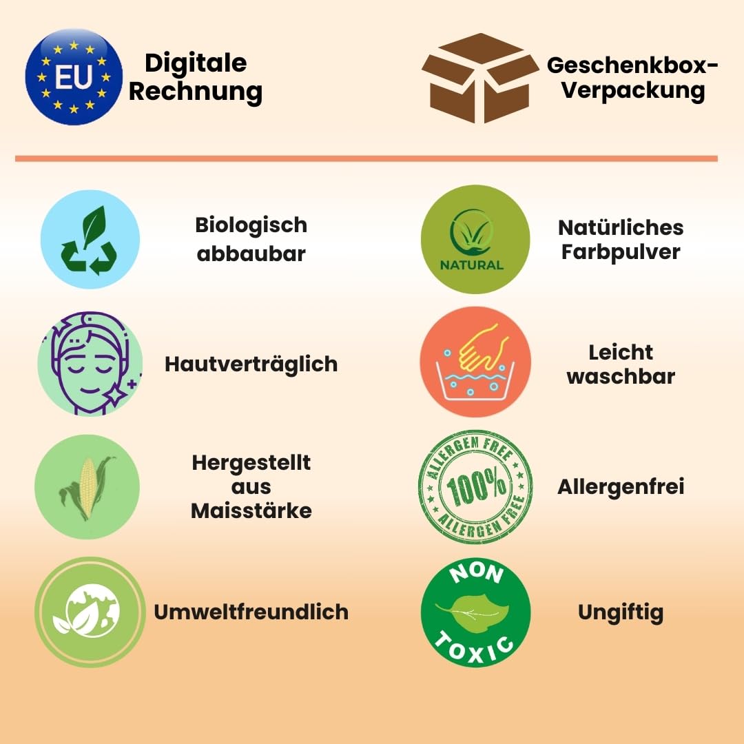 Richtig bunter Spaß für jede Party! Dieses Holi Farbpulver-Set bringt Stimmung in jede Feier - ob Geburtstag, Festival oder Sommerparty. 14 Beutel mit je 75g Pulver in verschiedenen knalligen Farben: Rot, Orange, Gelb, Blau, Grün, Lila, Pink - einfach alles dabei! Total ungefährlich: 100% natürliche Inhaltsstoffe, glutenfrei und allergenfrei. Geht leicht aus Haut, Haaren und Kleidung raus - einfach waschen und der Spaß ist weg. Auch für Haustiere unbedenklich, perfekt für bunte Foto-Shootings mit dem Hund! Einfach zu verwenden: Beutel schütteln, öffnen und ins Werfen kommen! Besonders gut für Farbkämpfe, Geschlechts-Enthüllungspartys oder bunte Läufe. Trocken und fein - perfekt für tolle Fotos wenn's durch die Luft fliegt! Aus 99% Maisstärke und 1% natürlichem Farbstoff - also absolut unbedenklich. Macht jede Party zum unvergesslichen Erlebnis und sorgt für lachende Gesichter und bunte Erinnerungen! Einfach ausprobieren - du wirst begeistert sein!