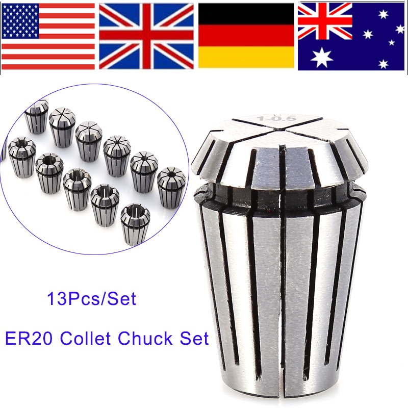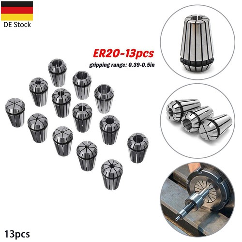 Profiqualität für deine CNC-Maschine! Dieses 15-teilige ER20 Spannzangen-Set deckt den kompletten Bereich von 1-13mm ab und ist damit perfekt für alle Fräs- und Gravierarbeiten.\\n\\nHergestellt aus hochwertigem 65Mn-Federstahl bieten diese Spannzangen maximale Stabilität und Langlebigkeit. Die Rundlauftoleranz von unter 0,008mm garantiert höchste Präzision bei deinen Arbeiten.\\n\\nIm Set enthalten sind alle gängigen Größen:\\n• 1,0mm - 13,0mm in Abstufungen\\n• Jede Spannzange in eigenem Schutzbehälter\\n• Gut beschriftet zur einfachen Identifikation\\n\\nTechnische Daten:\\n• Material: 65Mn Federstahl\\n• Außendurchmesser: 20mm\\n• Höhe: 30mm\\n• Rundlauftoleranz: <0,008mm\\n• Gesamtgewicht: 585g\\n\\nWichtig für die Installation: Jede Spannzange muss zuerst in die Spannzangenfuttermutter eingesetzt werden, bevor sie in das Spannzangenfutter kommt. So erreichst du optimale Spannkraft und Präzision.\\n\\nEgal ob du professioneller Maschinist oder ambitionierter Hobbyist bist - mit diesem Spannzangen-Set bist du für alle CNC-Bearbeitungsaufgaben bestens ausgerüstet!