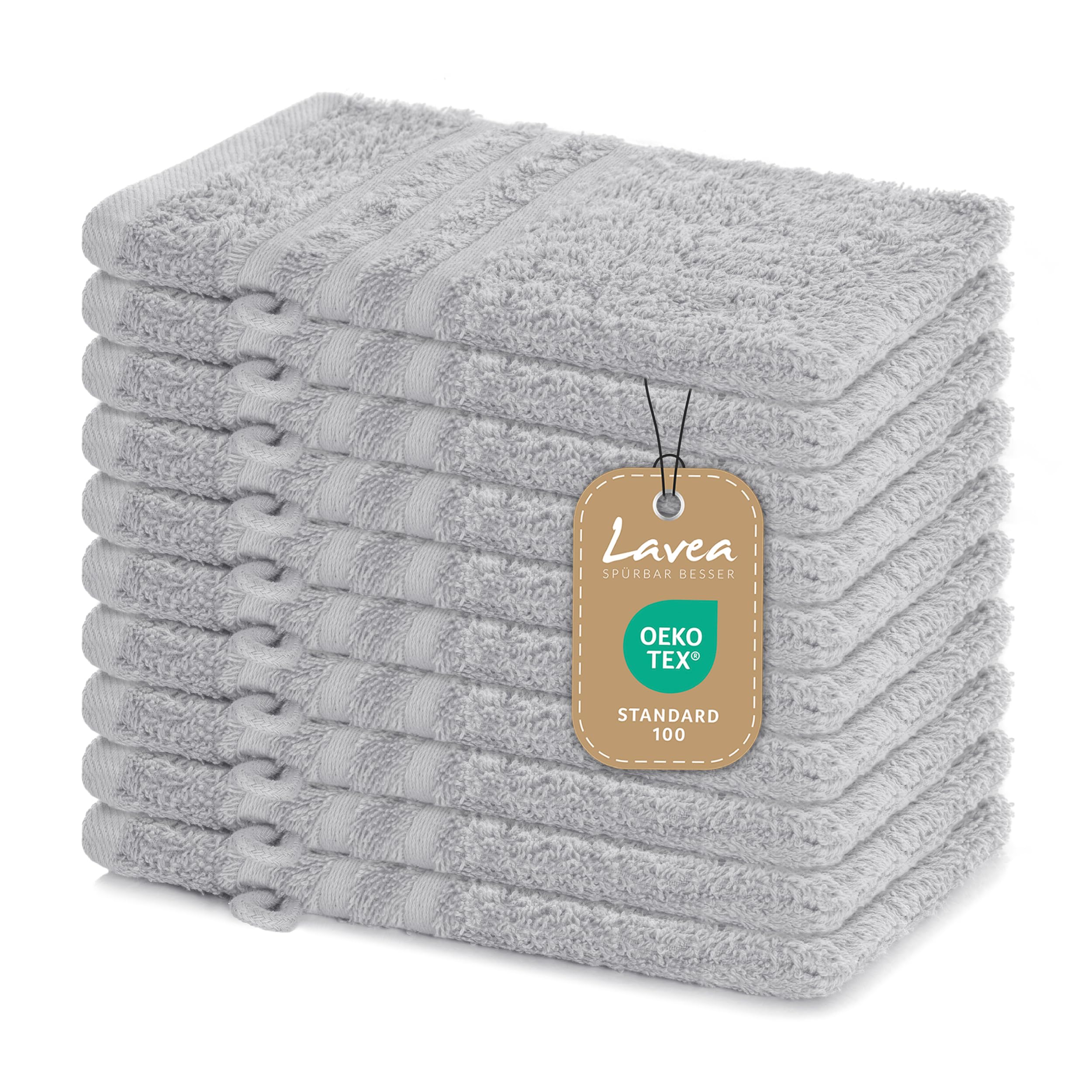 Lavea Waschhandschuh 10er Set - 15x21 Cm Baumwolle Frottier, Saugstark & Weich