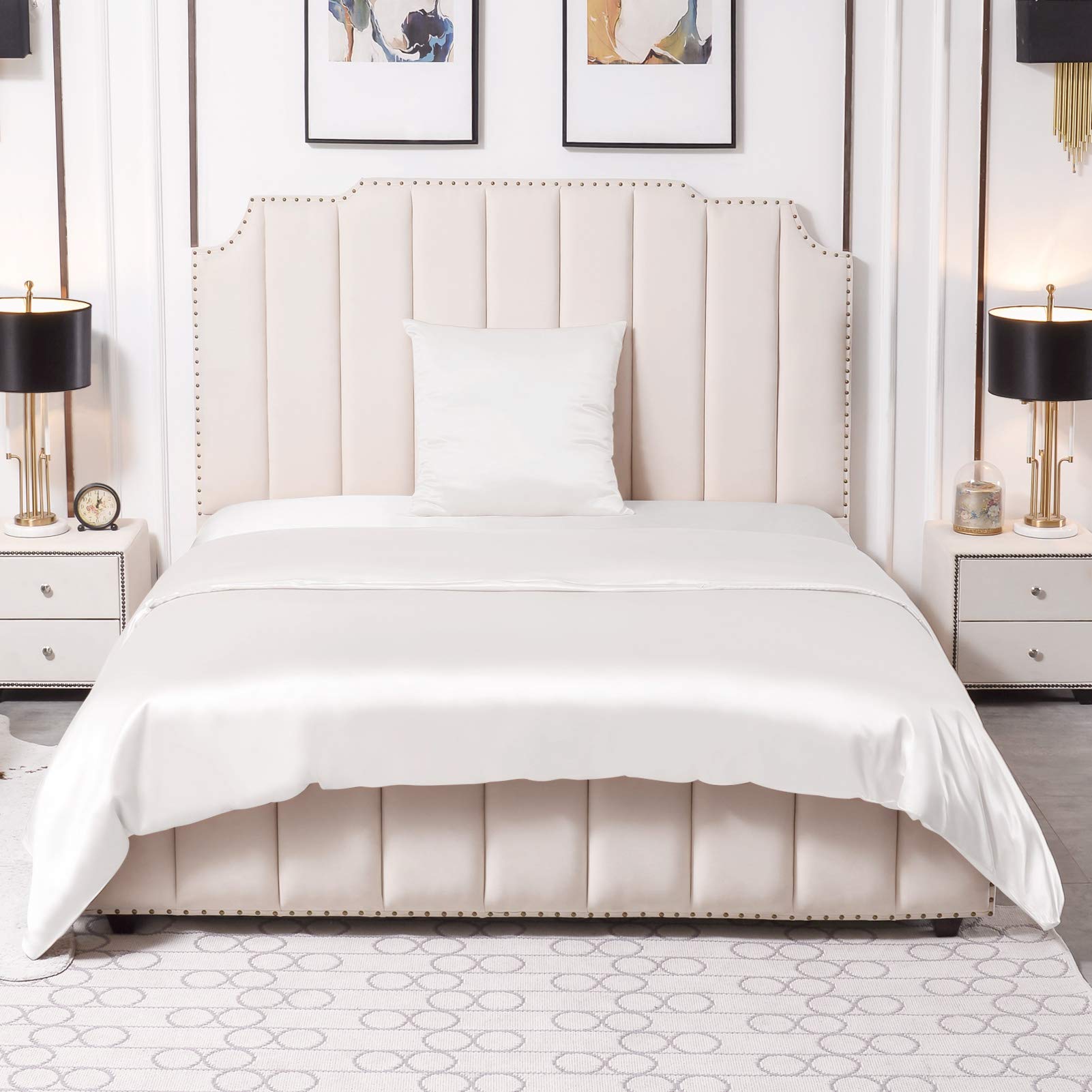 Einfach himmlisch schlafen! Dieses Seidenbettwäsche-Set von THXSILK ist pure Luxus für deine Haut und Haare. Aus 100% Maulbeerseide in 22 Momme Charmeuse gewebt - das ist richtig hochwertig und fühlt sich an wie ein zweite Haut. Super weich, ultra glatt und dabei total atmungsaktiv. Perfekt für alle mit empfindlicher Haut oder Allergien, denn Seide trocknet die Haut nicht aus und kann sogar bei Ekzemen, Psoriasis oder Akne helfen. Kein Wunder, dass es feine Linien und Falten reduzieren soll! Das Set besteht aus einem nahtlosen Bettbezug 135x200cm und einem Kissenbezug 80x80cm, beide mit Reißverschluss und praktischen Bändern an den Ecken. In edlem Gold sieht es einfach klasse aus. Einfach in der Pflege: Maschinenwäsche bei 30°C im Schonprogramm mit speziellem Seidenwaschmittel. Nach Öko-Tex Standard 100 zertifiziert - also absolut unbedenklich. Von THXSILK, einer Top-Seidenmarke aus China. Mach deine Nachtruhe zum puren Wellness-Erlebnis!