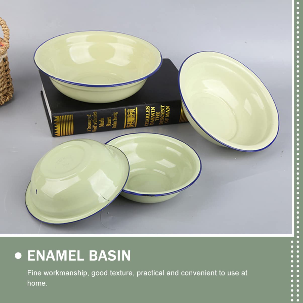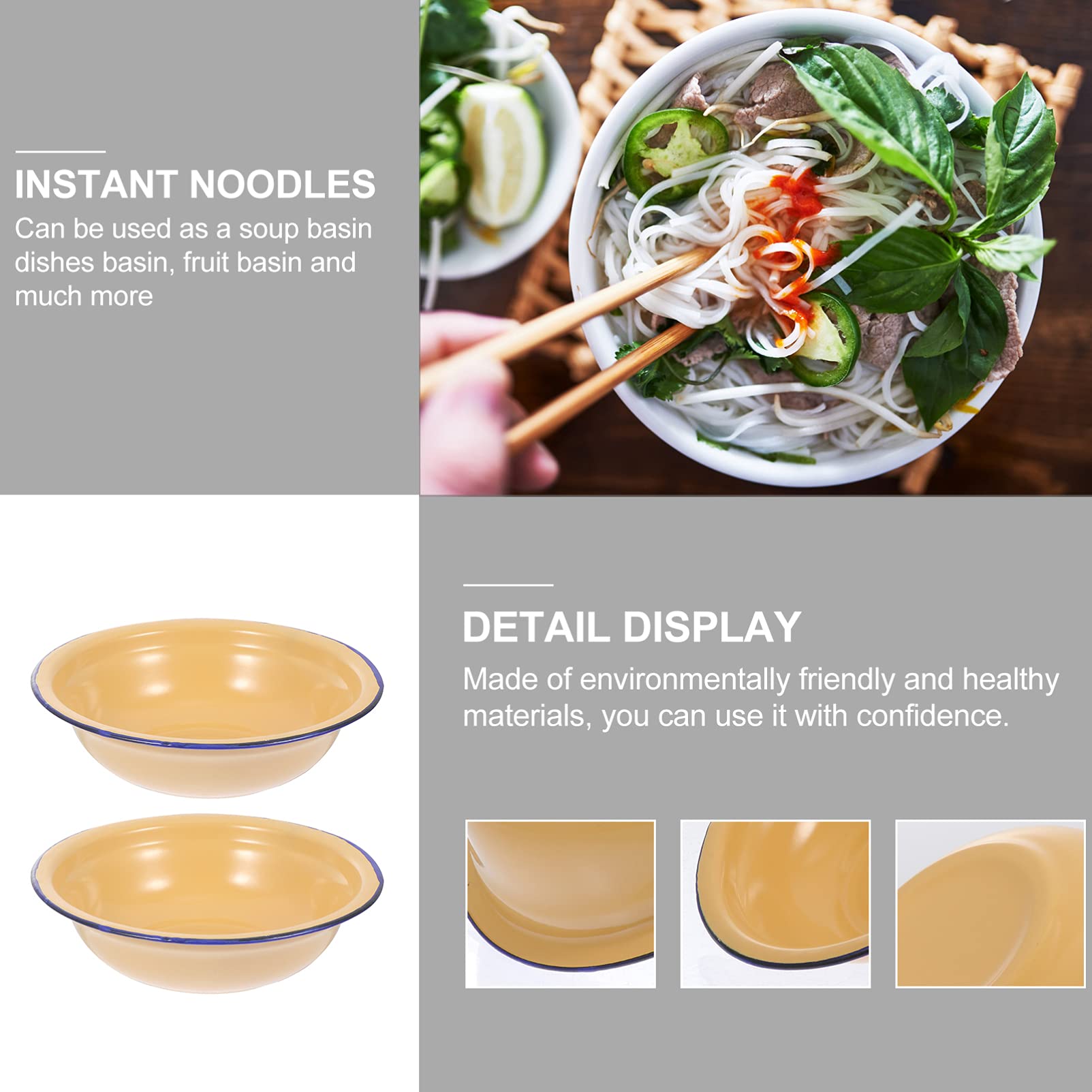 • FUNNETOYU Emaille Schüssel Set - 2-teiliges Suppenschüssel Set Vintage