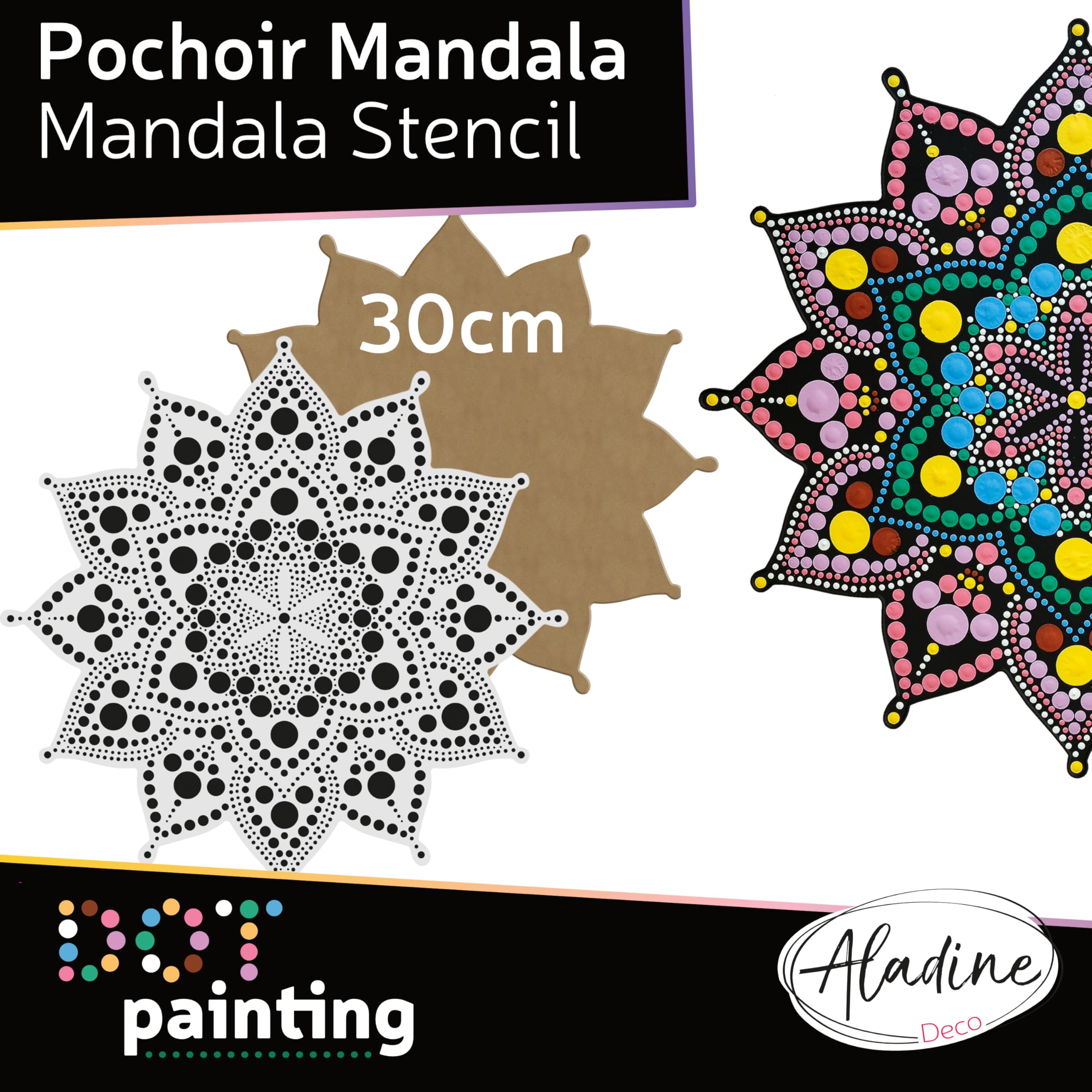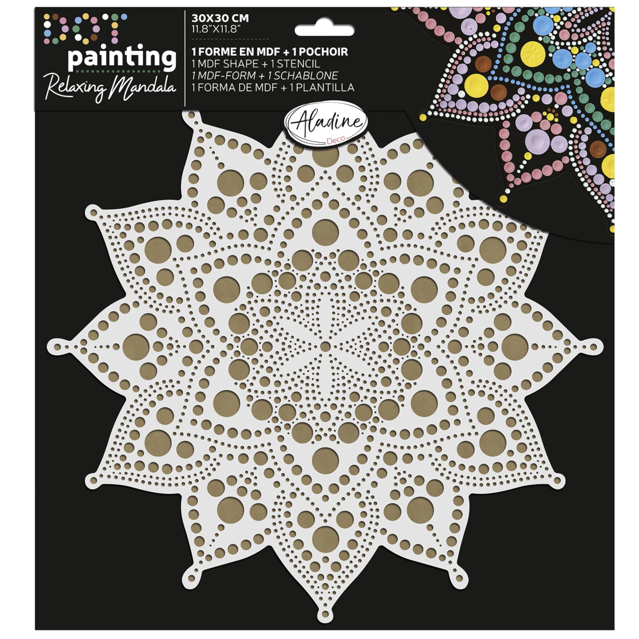 • Aladine Mandala Set 20cm - Dot Painting Mit Schablone & Holzständer