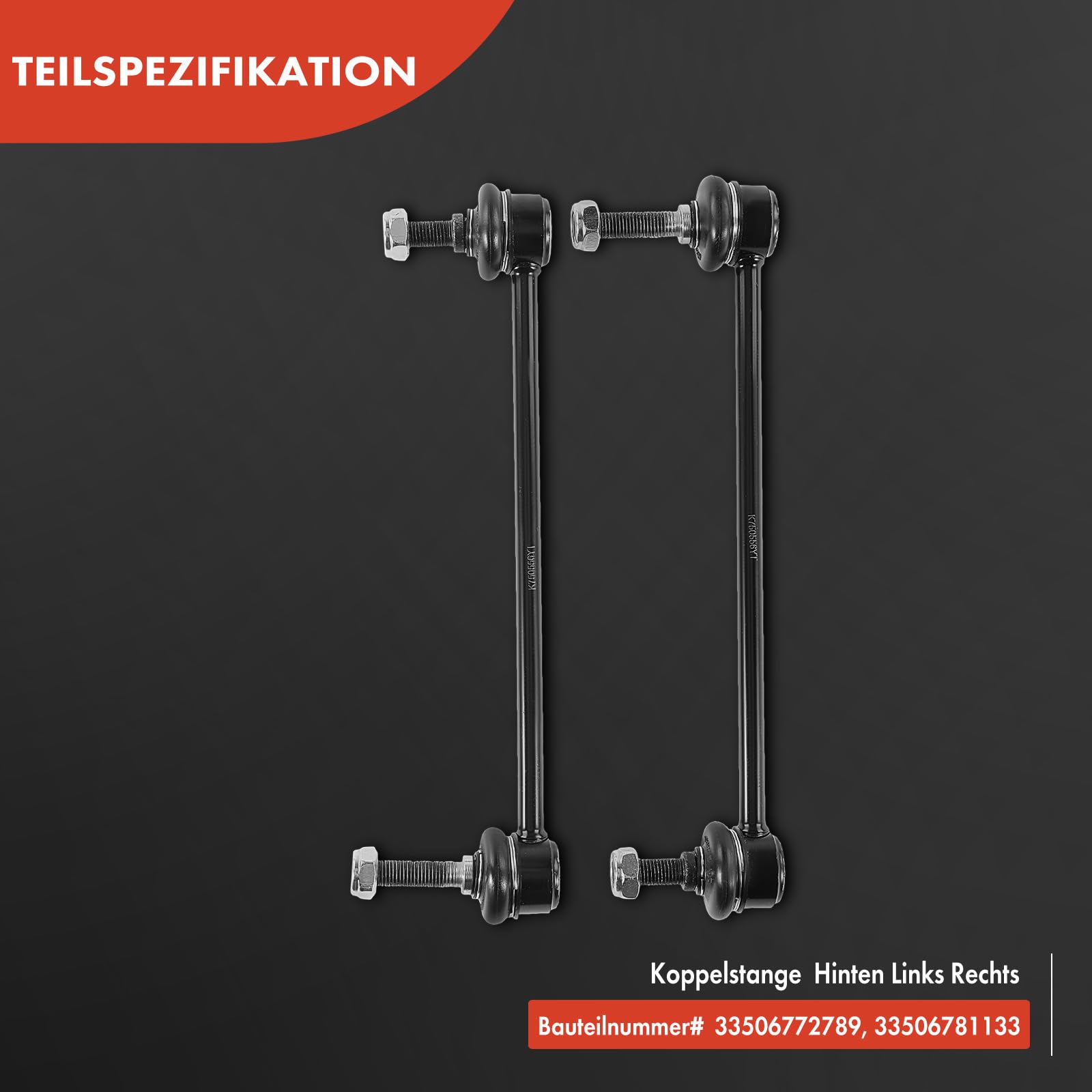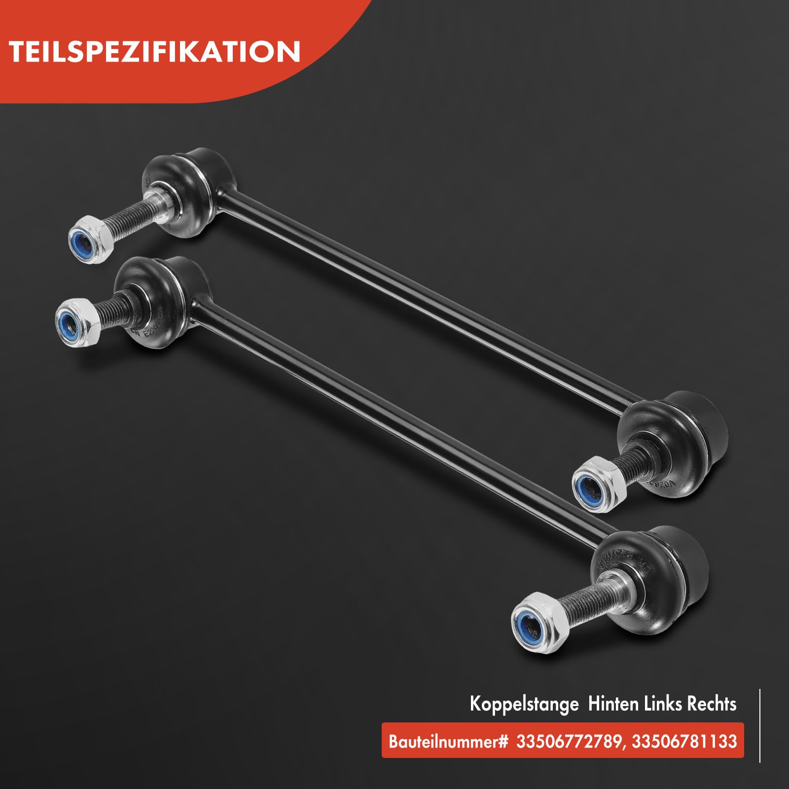Für stabile Fahrleistungen in deinem MINI! Dieses Koppelstangen-Set von Frankberg passt perfekt für MINI R50, R53 (2001-2006) und Cabriolet R52 (2004-2007) mit 1.4L und 1.6L Motoren. Enthält 2 Stück für die hintere Achse links und rechts. Mit 233mm Länge, 8mm Durchmesser und M10x1,5 Gewinde für perfekte Passform. Entspricht den OE-Nummern 33551507999, 33506772789, 33506781133 und anderen. Einfacher Einbau - verbessert sofort die Fahrstabilität und Lenkpräzision. Hochwertige Verarbeitung für lange Haltbarkeit. Wichtig: Bitte vor dem Kauf die OEM-Nummer und Fahrzeugliste sorgfältig überprüfen. Das richtige Set für mehr Fahrspaß und Sicherheit in deinem MINI. Hol dir wieder präzises Fahrverhalten und behebe Verschleißerscheinungen!