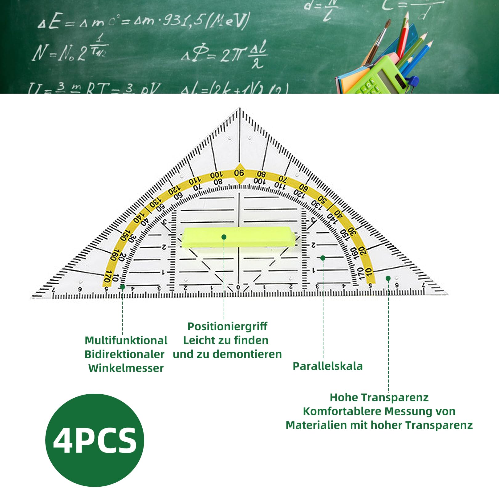 Perfekt ausgestattet für den Mathe-Unterricht! Dieses APOMOONS Geometrie-Set enthält alles, was Schüler brauchen: 1 großes Geodreieck (22,5cm), 1 kleines Geodreieck (15,8cm) und 1 Lineal (15cm). Beide Dreiecke mit praktischem Griff für rutschfestes Zeichnen. Aus transparentem Kunststoff - sieht die Linien darunter perfekt. Robust und bruchfest - hält den Schulalltag aus. Leicht und kompakt - passt in jedes Federmäppchen. Ideal für Mathematik, Geometrie, Technisches Zeichnen oder Kunst. Die griffigen Dreiecke verrutschen nicht - auch bei hektischem Unterricht nicht. Einfach ein Must-have für jeden Schüler!