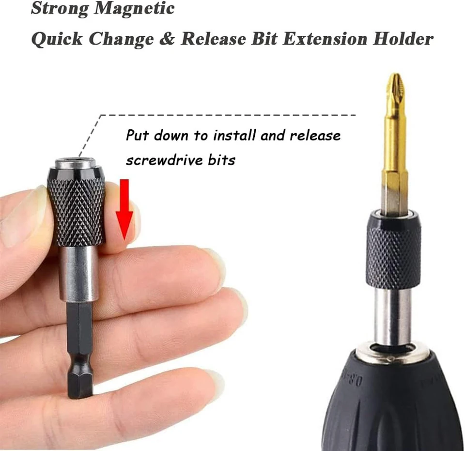 Nie wieder verlorene Bits! Dieses praktische Bithalter-Set von Bamyli besteht aus drei Verlängerungen in 60, 100 und 150 mm Länge. Mit magnetischem Halter für sicheren Bitsitz und schnellen Wechsel. Aus robustem Chrom-Vanadium-Stahl gefertigt, extrem langlebig und rostbeständig. Perfekt kompatibel mit den meisten Akkuschraubern, Bohrern und Bits. Kompakt und leicht - passt in jede Werkzeugtasche. Ideal für Heimwerker und Profis, die immer das richtige Werkzeug zur Hand haben wollen. Einfach zu handhaben und vielseitig einsetzbar. Hol dir jetzt dieses praktische Set und erleichtere dir deine Schraubarbeiten!