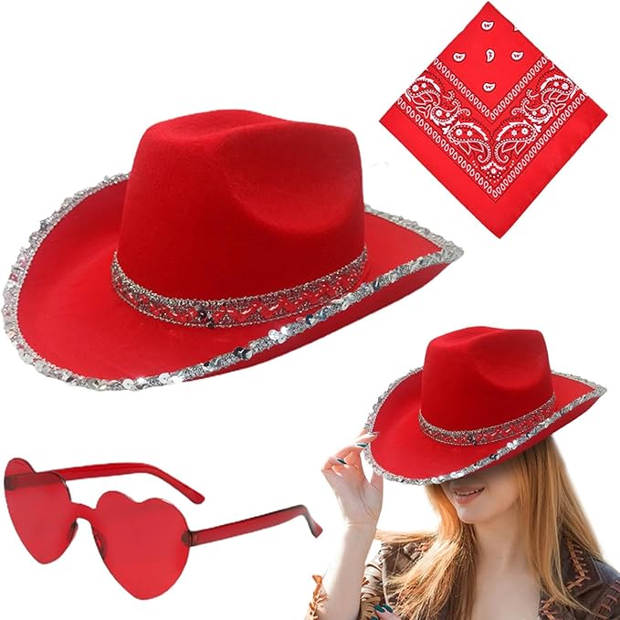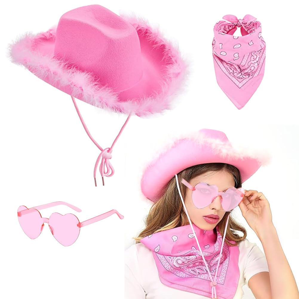 Yeehaw! Dieses süße 3-teilige Cowgirl-Set bringt Western-Flair in dein Leben. Enthält: rosa Filzhut (38x30x13 cm), coole Herzbrille und 2 Meter langen Federschal. Perfekt für Karneval, Halloween, Partys oder Fotoshootings. Der Hut hat verstellbaren Kinnriemen und ist aus weichem, atmungsaktivem Filz. Sieht super aus zu Jeans, Kleidern oder komplettem Western-Outfit. Ein tolles Geschenk für alle die den Country-Style lieben!