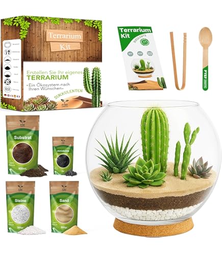 Erschaffe dein eigenes Mini-Ökosystem! Der Flaschengarten Milky im stylischen Milchflaschen-Design ist nicht nur ein echter Hingucker, sondern auch super pflegeleicht. Mit 30cm Höhe bietet er genug Platz für eine üppige Calathea-Pflanze und andere grüne Schätze. Im Lieferumfang ist alles enthalten, was du brauchst: Terrarium mit Korkdeckel, frische Pflanzen, Moos, Hydrogranulat, Aktivkohle, Blumenerde und Dekosteine. Plus eine einfache Schritt-für-Schritt-Anleitung - auch für Anfänger perfekt geeignet. Das besondere am Flaschengarten: Er reguliert sich selbst! Einmal eingerichtet, benötigt er kaum Pflege und schafft ein stabiles Mikroklima. Ideal fürs Wohnzimmer, Büro oder als besonderes Geschenk für Pflanzenliebhaber. Bring die Natur in dein Zuhause - ohne grünen Daumen! Ein kreatives DIY-Projekt, das Entspannung bringt und deine Räume in eine grüne Oase verwandelt. Einfach aufbauen, zurücklehnen und dem Wachstum zuschauen!