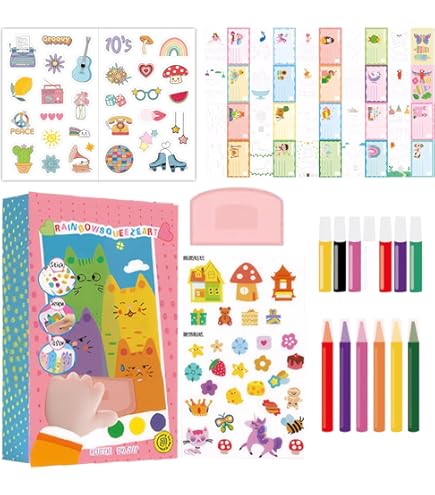 Kreativ-Spaß für Kinder! Dieses Kratzkunst-Set enthält 20 Postkarten, 7 Farben, 6 Aquarellstifte, Aufkleber und Schaber. Einfach Farbe auftragen, 20-30 Sekunden warten, dann mit Schaber kratzen - tolle Kunstwerke entstehen! Ohne Malkenntnisse, fördert Kreativität und Feinmotorik. Aus ungiftigem Papier, absolut sicher. Perfekt für Geburtstage, Schulaktivitäten oder zu Hause. Stundenlanger Beschäftigungsspaß! QR-Code für Video-Tutorial. Ideal als Geschenk oder für gemeinsame Bastelstunden. Lass der Fantasie freien Lauf - die Ergebnisse werden begeistern!