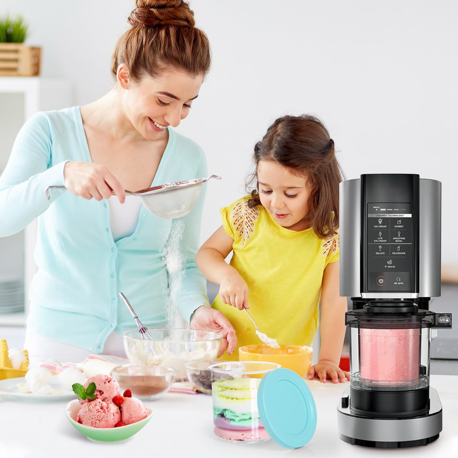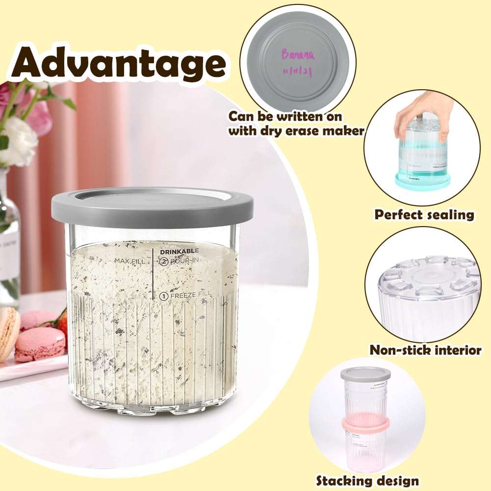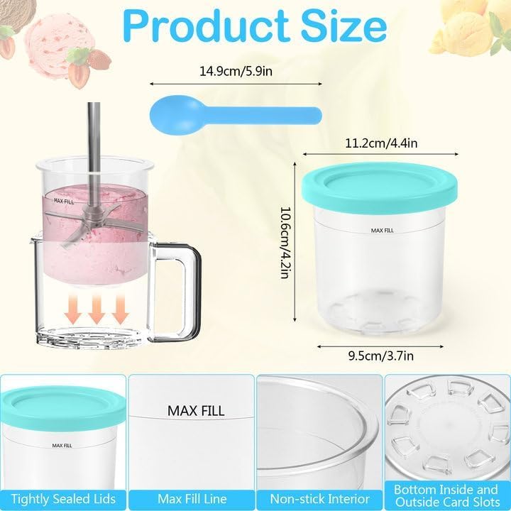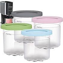 Perfektes Zubehör für deine Ninja Creami Eismaschine! Dieses Set mit 4 wiederverwendbaren Behältern (je 500ml) gibt dir die Freiheit, mehrere Eissorten gleichzeitig vorzubereiten. Kompatibel mit den Modellen NC299, NC300 und NC301 - bitte vor dem Kauf prüfen! Jeder Becher hat einen farbigen Deckel, sodass du die Geschmacksrichtungen leicht unterscheiden kannst. Mit praktischem Löffel und luftdichtem Deckel für einfache Aufbewahrung und Transport. Aus lebensmittelechtem PC+PP Material, spülmaschinenfest und leicht zu reinigen. Ideal für Eis, Joghurt, Sorbet und Milchshakes. Nie wieder warten müssen bis ein Behälter frei wird - mach einfach mehrere Sorten auf Vorrat! Super für Familien oder Partys.