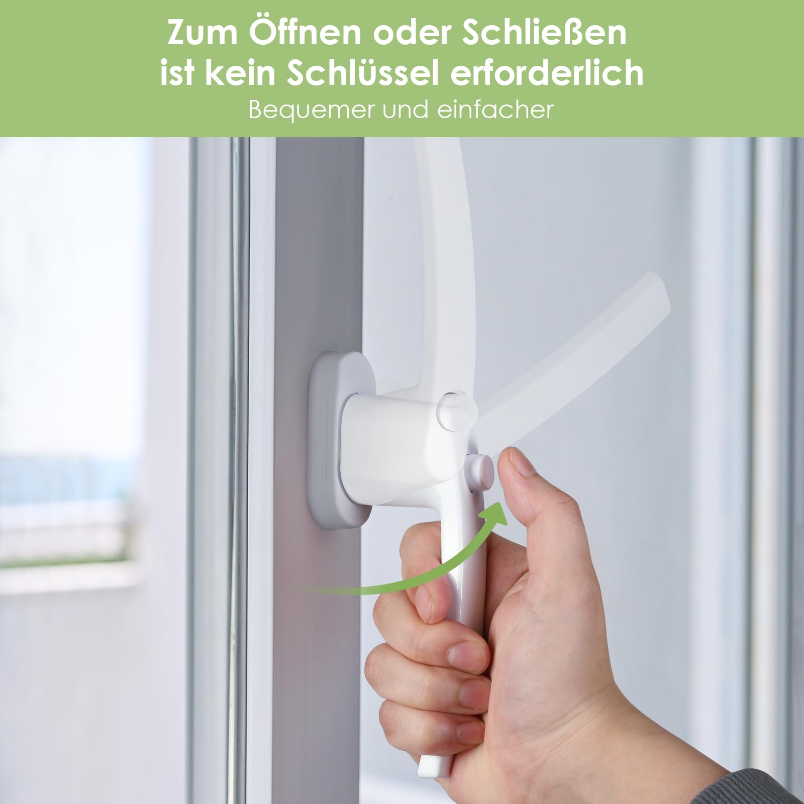 Hey, hast du kleine Kinder zu Hause? Dann kennst du das Problem - neugierige Hände, die Fenster öffnen wollen! Mit diesen Anhoer Fensterschlössern schaffst du Abhilfe. Das Set mit 4 robusten Schlössern aus Aluminiumlegierung ist super einfach zu montieren und hält richtig was aus.\n\nEinfach an deinem PVC-Fenster oder der Tür anbringen, und schon kannst du beruhigt sein. Der Schwenkriegel dreht sich um 180 Grad - so bestimmst du selbst, wie weit das Fenster geöffnet werden darf. Perfekt fürs Lüften, ohne dass die Kleinen in Gefahr geraten!\n\nIm Lieferumfang ist alles dabei, was du brauchst: 4 Schlösser, 8 Schrauben, 4 Dichtungen und 12 Abdeckkappen. Die weiße Farbe passt zu fast jedem Fenster und fällt kaum auf. Mit den Abriebschutzscheiben kratzt sich nichts am Fensterrahmen.\n\nOb in der Wohnung, im Haus oder im Büro - diese Sicherheitsschlösser geben dir das gute Gefühl, dass deine Kinder sicher sind. Einfach montieren, umdrehen und entspannen! Die Maße von 66x60x20mm sind ideal für die meisten Standardfenster.