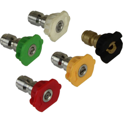 Alter, wenn dein Hochdruckreiniger nicht mehr so richtig will, könnten neue Düsen das Problem lösen! Dieses 4-teilige Set ist genau das, was du brauchst. 💪\n\nMit dabei sind vier verschiedene Düsen in Rot, Gelb, Grün und Weiß - jede mit nem anderen Winkel und Lochdurchmesser. So hast du für jede Reinigungsaufgabe die passende Düse parat!\n\nDie rote Düse mit 0 Grad ist super für hartnäckigen Schmutz, die gelbe mit 15 Grad für normale Reinigung, die grüne mit 25 Grad für größere Flächen und die weiße mit 40 Grad für empfindliche Oberflächen.\n\nDas Beste: Der 1/4 Zoll Schnellanschluss macht den Wechsel mega einfach. Einfach klicken und schon bist du ready to go! Kein Gefummel, kein Werkzeug nötig.\n\nDie Düsen sind aus ner robusten Kombination von Kunststoff und Messing - halten also was aus und rosten nicht so schnell. Sie sind für nen Arbeitsdruck von 100-200 bar ausgelegt, also für die meisten handelsüblichen Hochdruckreiniger perfekt geeignet.\n\nOb du jetzt deine Terrasse, das Auto oder die Gartenmöbel reinigen willst - mit diesem Set hast du für jede Situation die richtige Düse. Und wenn mal eine kaputt geht, hast du ja Ersatz!\n\nEhrlich, für den Preis ist das Set unschlagbar. Dein Hochdruckreiniger wird dir danken und die Reinigung macht damit gleich doppelt so viel Spaß. Einfach ausprobieren!