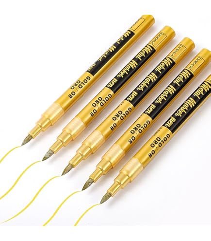 Kreative aufgepasst! Dieses 4er-Set Goldstifte bringt deine DIY-Projekte zum Strahlen. Mit vier verschiedenen Spitzenstärken: 0,5mm und 0,7mm für feine Details und Linien, Br für besondere Striche und 2,0mm für große Flächen. Die hochwertige Acryltinte deckt super stark - egal ob auf dunklem Metall, schwarzem Karton oder heller Keramik. Perfekt für Steinmalerei, Keramik, Holz, Glas, Metall und Kunststoff. Einfach vor Gebrauch schütteln, Spitze drücken bis Tinte kommt und loslegen! Die Tinte fließt gleichmäßig, trocknet schnell und verschmiert nicht. Verwirkliche deine kreativen Ideen: Gestalte einzigartige Wohnaccessoires, personalisierte Geschenke oder kunstvolle Steine. Deiner Fantasie sind keine Grenzen gesetzt mit diesen vielseitigen Goldstiften!