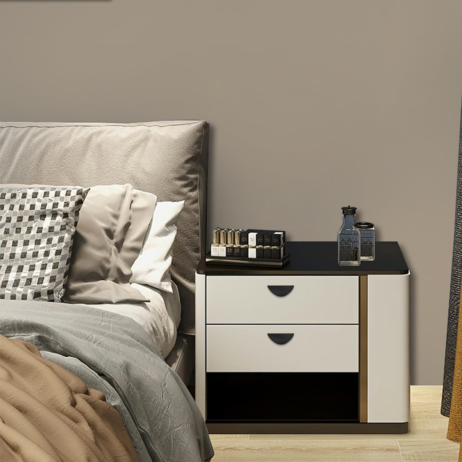 Einfach aufkleben - fertig! Dieses 4-teilige Türgriff-Set von FUTUREORYY verwandelt deine Möbel im Handumdrehen. Die grauen Griffe aus robustem ABS-Kunststoff kleben einfach auf - ganz ohne Bohren! Mit 11cm Länge passen sie perfekt für Küchenschränke, Kommoden, Schubladen und Kleiderschränke. Die Oberfläche ist korrosionsbeständig und verblasst nicht. Einfach zu montieren und zu demontieren. Gib deinen Möbeln mit diesen stylischen Griffen ein komplett neues Aussehen. Modernes Design, das überall gut aussieht!