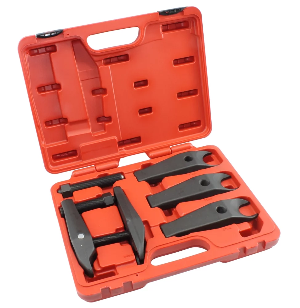 Für alle Schrauber und Werkstatt-Profis: Dieses CCLIFE Kugelgelenk-Abzieher-Set macht die Demontage von Spurstangenköpfen und Querlenkern zum Kinderspiel! Enthalten sind 5 verschiedene Gabelköpfe (22mm, 24mm, 27mm, 32mm, 36mm) plus zwei Antriebsspindeln (95mm und 120mm mit Kugellager). Der verstellbare Kapazitätsbereich von 30-56mm passt für die meisten Fahrzeuge. Besonders schonend für die Bauteile - keine Beschädigungen mehr an Achsschenkeln oder anderen Teilen! Kompatibel mit BMW E38, E39, E60, E90 und vielen anderen, Mercedes W211, W220, Audi A4, A6, Porsche 996 und Land Rover. Einfach die passende Gabel wählen, montieren und mit wenig Kraftaufwand das Kugelgelenk lösen. Aus hochwertigem Stahl für lange Haltbarkeit. Ein Muss für jede Werkstatt!