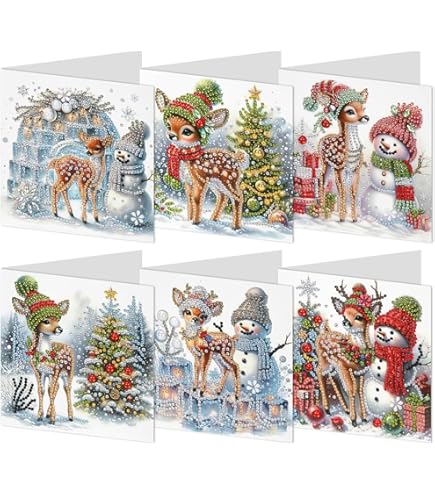 Wow, diese Diamond Painting Karten sind einfach magisch! Stell dir vor: Du bekommst 6 wunderschöne Weihnachtskarten mit Motiven wie Schneemann und Rentier, die du selbst mit funkelnden Strass-Steinen verzieren kannst. Einfach die Diamanten an die vorgedruckten Stellen kleben - und schon entsteht ein atemberaubender 3D-Effekt, der im Licht glitzert!
