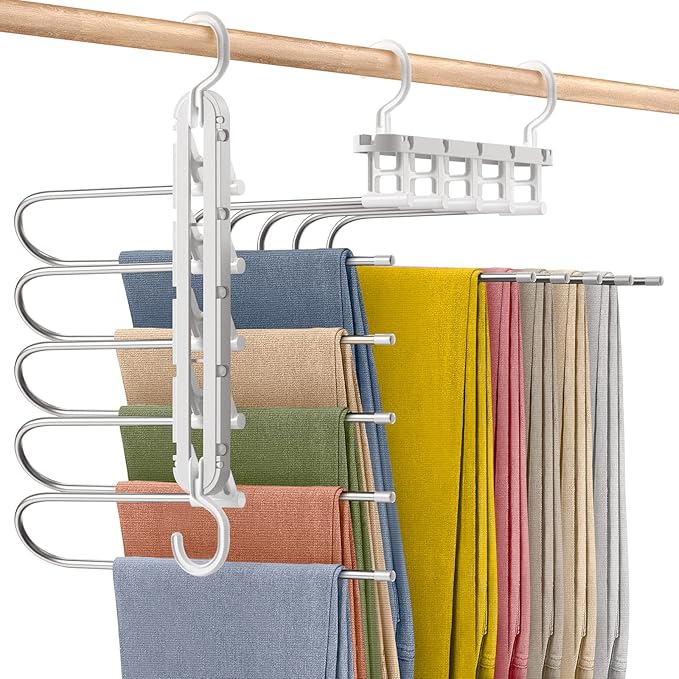 Schluss mit dem Hosen-Chaos im Schrank! Dieses praktische 3er Set von Wusboo bringt endlich Ordnung in deine Hosen-Sammlung. Jeder Bügel hat 6 Ablage-Ebenen - perfekt für Hosen, Röcke oder Handtücher! Aus Metall mit TPR-Gummi-Auflage - rutschfest und knitterfrei! Maße 36x49 cm - schlank genug für volle Kleiderschränke! 360° drehbarer Haken - super praktisch zum Aufhängen und Greifen! In 30 Sekunden montiert - werkzeuglos und einfach! Auch faltbar - platzsparend für unterwegs oder saisonale Aufbewahrung! Vielseitig nutzbar: Als Krawattenhalter, Gürtel-Organizer oder Handtuch-Aufhänger! Rostbeständig und langlebig - keine Sorge vor Feuchtigkeit im Badezimmer! Mach deinen Kleiderschrank zur Wohlfühloase und finde endlich sofort, was du suchst! Ein kleines Teil mit großer Wirkung für mehr Ordnung im Alltag!