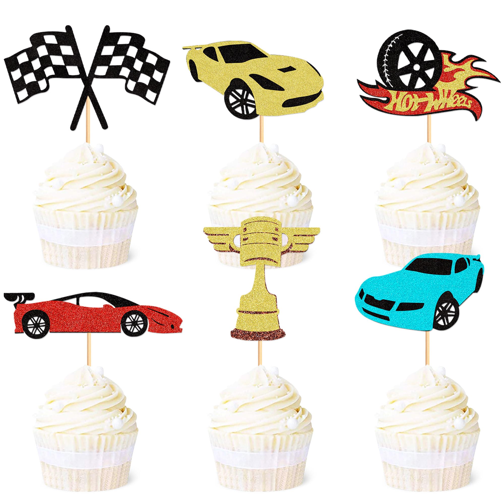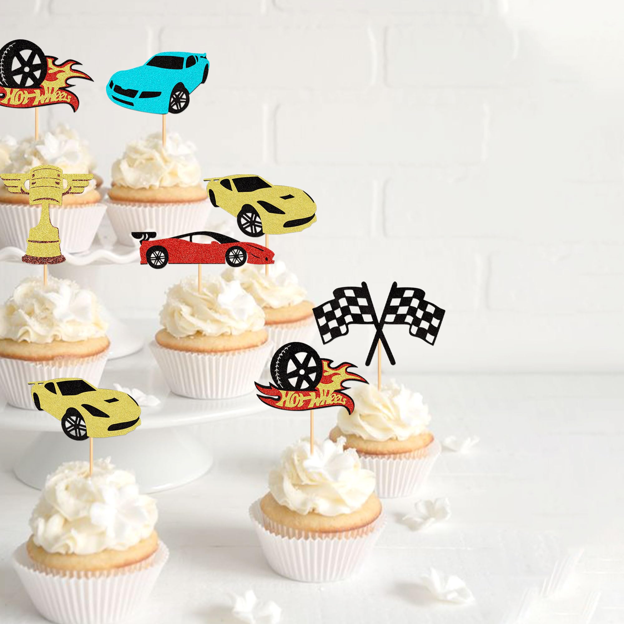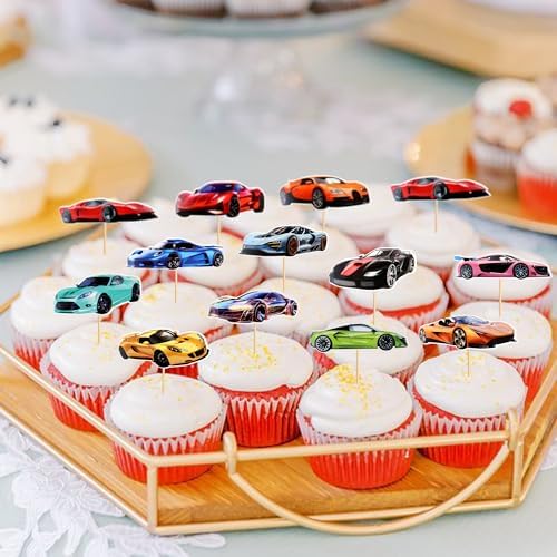 Vollgas für die nächste Geburtstagsparty! Dieses Rennwagen-Cupcake-Set bringt richtig Stimmung auf den Tisch. Enthalten sind 6 verschiedene Rennwagen-Designs aus hochwertigem 300g Karton mit Lebensmittel-zugelassenen Stäbchen. Einfach in die Cupcakes stecken und schon sieht das Buffet super aus. Perfekt für Rennsport-Themenpartys, Jungengeburtstage oder Baby-Showers mit Autothema. Aber Achtung: Die Topper sind nur für die Deko, nicht essbar und dürfen nicht in Mikrowelle oder Ofen. Die Rückseite ist einfach weiß gehalten - das stört aber überhaupt nicht, wenn sie in den Cupcakes stecken. Damit werden nicht nur Cupcakes, sondern auch Kekse, Donuts oder sogar Obstspieße zum Hingucker. Mach deine nächste Party unvergesslich mit diesem coolen Rennsport-Deko-Set. Die Qualität ist top, die Motive sind super detailliert und die Gäste werden begeistert sein!