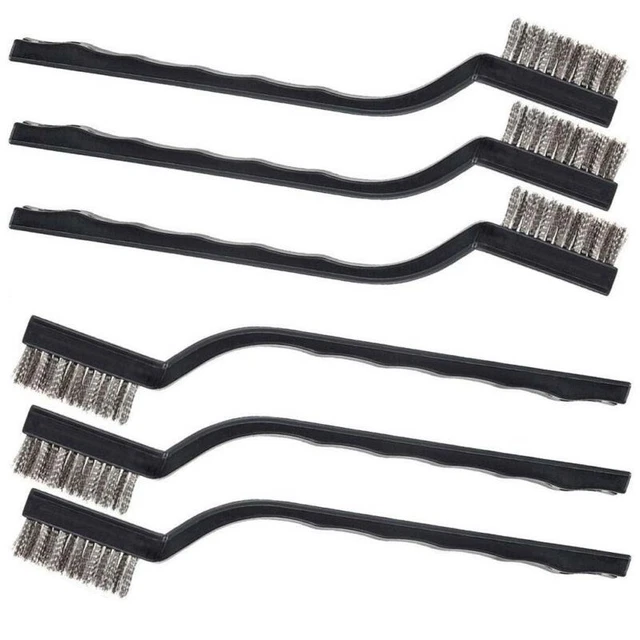 Dieses 6-teilige Edelstahlbürsten Set ist der Alleskönner für Werkstatt und Haus! Enthalten sind 3 große Bürsten (235mm) mit kräftigen 0,3mm Drähten, 1 mittlere (220mm) und 2 kleine (170mm) mit feineren 0,1mm Drähten. Perfekt zum Entfernen von Rost, Schweißschlacken, Farbresten oder Verschmutzungen. Die ergonomischen Griffe liegen super in der Hand und die Aufhängeschlaufen ermöglicht platzsparende Lagerung. Robuster Edelstahl verliert kaum Borsten und ist extrem langlebig. Egal ob Auto, Fahrrad, Metallarbeiten oder Heimwerker-Projekte - mit diesem Set bist du für jede Reinigungsaufgabe gewappnet. Die verschiedenen Größen erreichen auch schwer zugängliche Ecken. Profi-Qualität zum fairen Preis - ein Must-Have für jeden Handwerker und Hobby-Bastler!