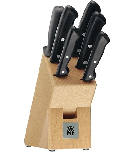 Koch-Enthusiasten aufgepasst! Dieses WMF Grand Class Messerset bietet alles für die professionelle Küche. 6 Teile: Messerblock, Kochmesser 20cm, Fleischmesser 20cm, Brotmesser 19cm, Gemüsemesser 9cm, Küchenschere. Geschmiedete Klingen aus Chrom-Molybdän-Vanadium-Stahl - Made in Germany! Performance Cut-Schliff für langanhaltende Schärfe. Ergonomische Griffe mit edler Nieten-Optik. Bambus-Block schützt die Messer und sieht dabei stylisch aus. Perfektes Geschenk für Hobbyköche und Profis. Hol dir jetzt deutsche Qualität für deine Küche!