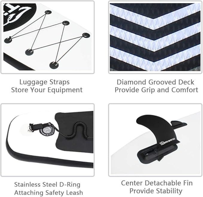 Dieses SUP Board Set hat alles, was du fürs Paddeln brauchst! Das Board ist 3,5m lang und 78,7cm breit - super stabil auch für Anfänger. Trägt bis zu 220 Pfund - also für die meisten Leute perfekt. Aus hochwertigem PVC und militärischem Material - extrem robust und langlebig. Die 7 Bodenrippen geben dir Geschwindigkeit und Kontrolle. Das 3-Finnen-System hilft beim Geradeausfahren und Manövrieren. Mit magnetischem Getränkehalter - dein Drink ist immer sicher. Und die GoPro-Halterung sorgt für coole Action-Aufnahmen! Der rutschfeste EVA-Belag gibt dir Halt auch wenn's nass wird. Nur 24 Pfund leicht - einfach zu transportieren. Passt aufgeblasen in jedes Auto. Perfekt zum Angeln, Schnorcheln oder einfach nur zum Entspannen auf dem Wasser. Alles dabei - Board, Paddel, Pumpe - einfach aufblasen und lospaddeln!