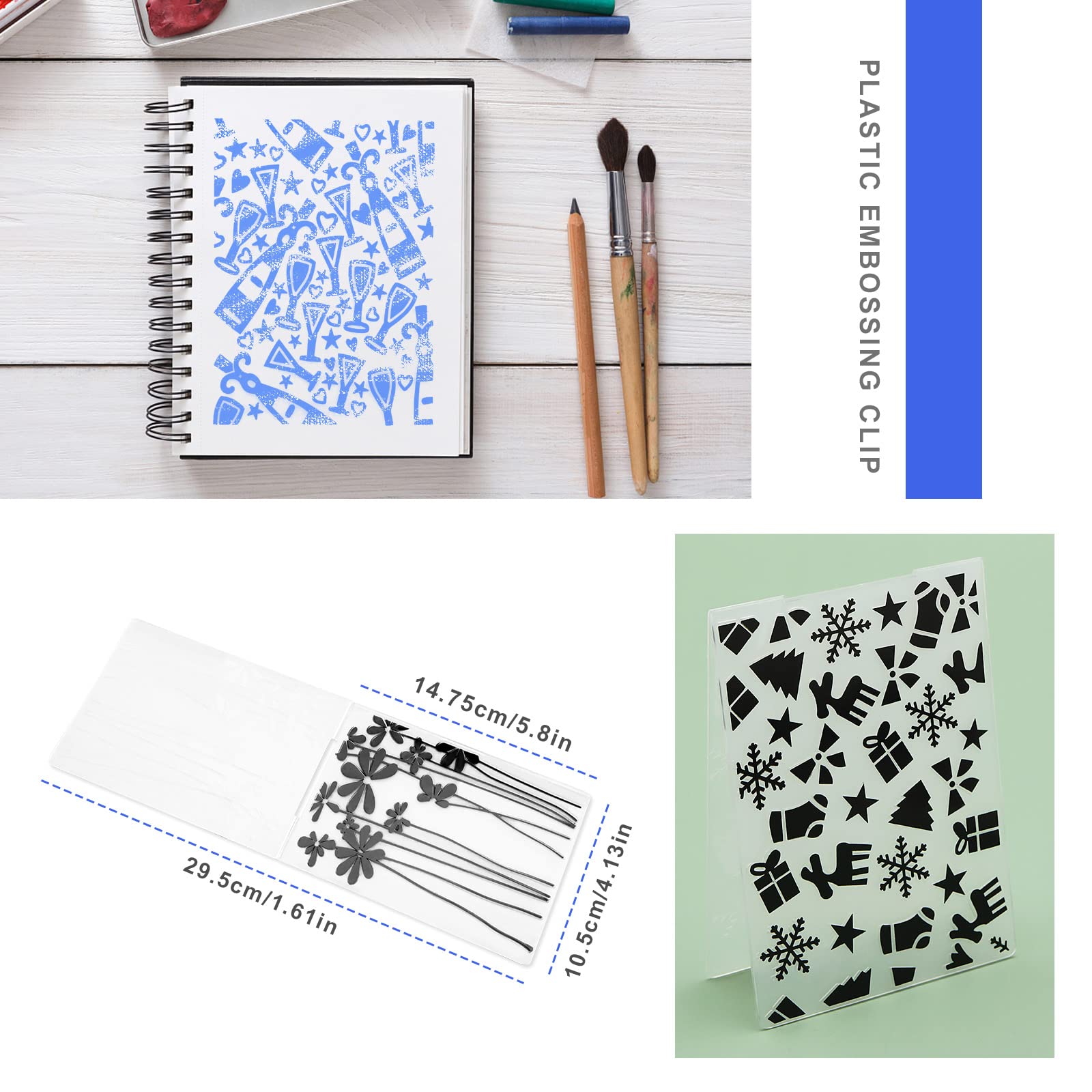 Für alle, die gerne basteln und karten gestalten! Dieses 15-teilige Set mit Prägeschablonen bringt deine DIY-Projekte auf das nächste Level. Aus stabilem Kunststoff gefertigt, verformen sich nicht und sind langlebig. Verschiedene Muster wie Weihnachtsmotive, Blumen, Herzen und Schmetterlinge bieten vielfältige Gestaltungsmöglichkeiten. Größe: ca. 14,75x10,5 cm (gefaltet). Einfach Papier, Karton oder Metallfolie unterlegen und prägen - schon entstehen wunderschöne reliefartige Muster. Perfekt für Einladungskarten, Hochzeitsdekoration, Fotoalben oder Geschenkanhänger. Deiner Kreativität sind keine Grenzen gesetzt! Ob für Anfänger oder erfahrene Bastler - mit diesen Schablonen kreierst du professionell aussehende Kunstwerke!
