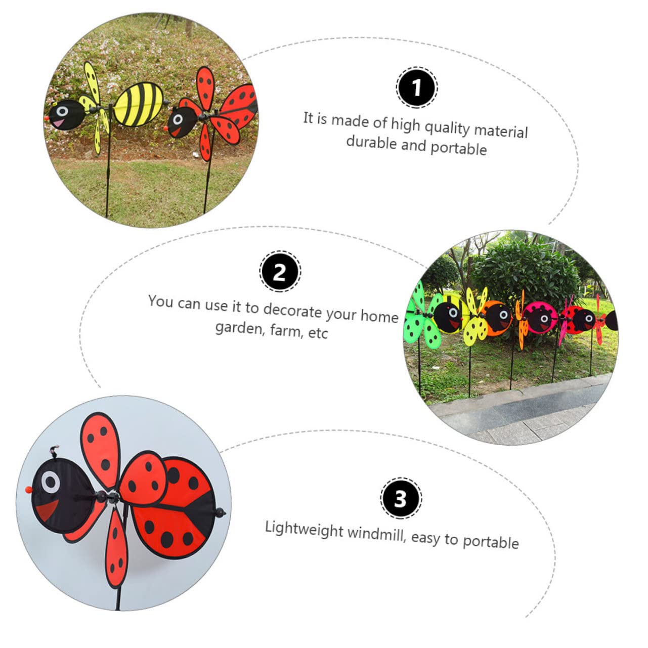 Wie süß sind denn diese tierischen Windmühlen? Das Set kommt mit zwei verschiedenen Designs - Biene und Marienkäfer - die sich fröhlich im Wind drehen. Aus buntem Stoff gemacht, ca. 73 cm hoch und super einfach im Garten zu stecken. Bringen sofort Leben in deinen Garten, auf die Terrasse oder den Balkon. Kinder lieben sie, aber auch als reine Deko machen sie was her. Das Beste: Sie sind leicht, langlebig und wetterfest. Einfach in die Erde stecken und sich über die bewegten Farbtupfer freuen. Perfekt für alle, die ihrem Garten was Besonderes gönnen wollen oder den Kids was zum Staunen bieten möchten!