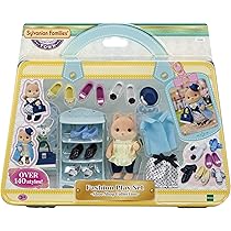 Achtung alle Sylvanian Families Fans! Dieses super süße Fashion Zubehör Set bringt jede Menge Style in eure Spielwelt. Im Set ist ein richtig cooles Ausstellungsregal enthalten, plus jede Menge modischer Accessoires: 4 verschiedene Handtaschen, einen schicken Hut, einen Sonnenschirm und sogar 2 hübsche Haarreifen! Eure Sylvanian Figuren können jetzt also richtig angesagt durch die Stadt bummeln. Das Tolle: Alles lässt sich super kombinieren - mixt und matched die Teile einfach nach eurer Lust und Laune! Perfekt für das Einkaufszentrum 'Wunschbrunnen' aus der Town Series. Das Set fördert nicht nur die Fantasie und Kreativität von Kindern ab 3 Jahren, sondern macht auch einfach irre viel Spaß! Die Details sind liebevoll gestaltet und alles passt perfekt zu den kleinen Figuren. Ob als Geschenk zum Geburtstag oder einfach so - mit diesem Fashion Set wird jedes Sylvanian Families Abenteuer noch aufregender! Und das Beste: Ihr könnt immer wieder neue Outfits zusammenstellen und euren Figuren so einen ganz individuellen Look verpassen. Viel Spaß beim Shoppen in der Sylvanian Welt!
