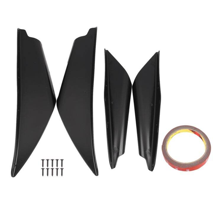 Mach dein Auto zum echten Hingucker! Dieses 4-teilige Canards Set in glänzender Carbon-Optik verleiht deinem Fahrzeug sofort einen aggressiven Sportlook. Aus robustem ABS-Material gefertigt, das auch bei höheren Geschwindigkeiten stabil bleibt. Einfach zu montieren - passt vorne links und rechts an die Stoßstange. Der spezielle Winkel sorgt nicht nur für optische Aufwertung, sondern kann auch aerodynamische Vorteile bringen. Universal für die meisten Fahrzeugmodelle geeignet - aber vor dem Kauf lieber nochmal genau prüfen, ob's wirklich passt. Verleiht deinem Auto das gewisse Extra und lässt es aus der Masse hervorstechen. Einfach montieren, bewundern und genießen! Für alle Tuning-Fans, die ihr Fahrzeug individueller gestalten wollen.