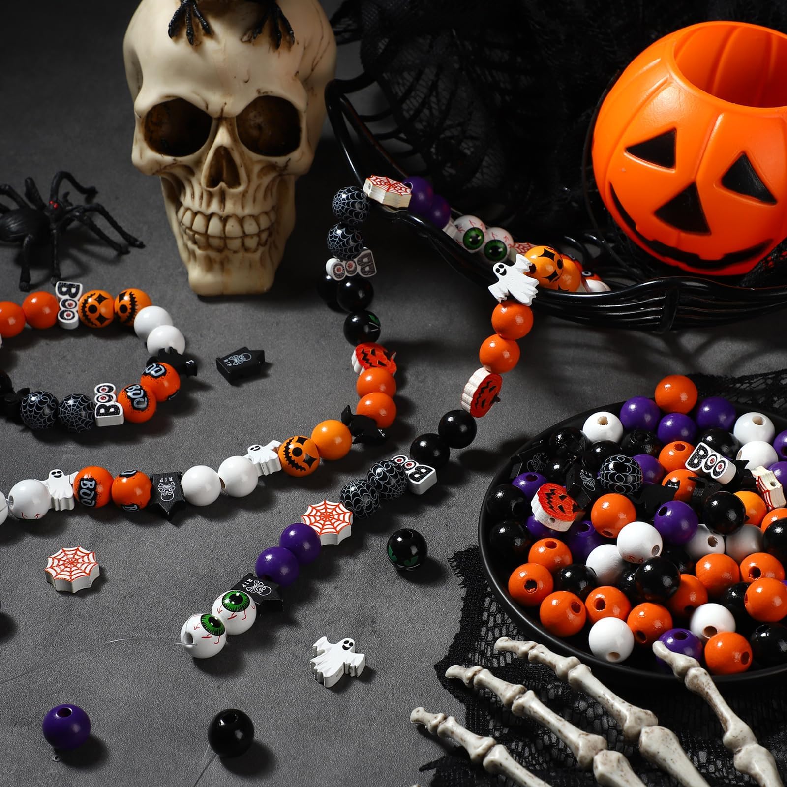 Dieses Baoximong Halloween-Perlen-Set bringt jede Menge Bastelspaß! Enthalten sind bunte Perlen in Orange, Schwarz, Grün, Lila und Weiß - perfekt für gruselige Halloween-Kreationen. Mit dabei: flache Tonperlen, Rocailles, Charm-Perlen in Form von Kürbissen, Hexenhüten, Geistern und mehr. Plus 2 Rollen elastische Schnur (je 10m). Du kannst Armbänder, Halsketten, Ohrringe oder Schlüsselanhänger basteln. Alles ist sicher und ungiftig. Ideal für Halloween-Partys, als Geschenk oder einfach für kreative Nachmittage!