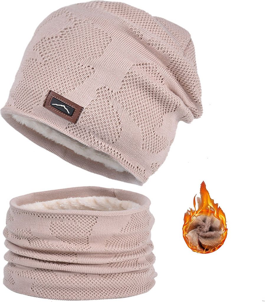 • WANYIG Winter Mütze & Schal Set Damen - Strick Set Mit Bommel Und Fleece Futter