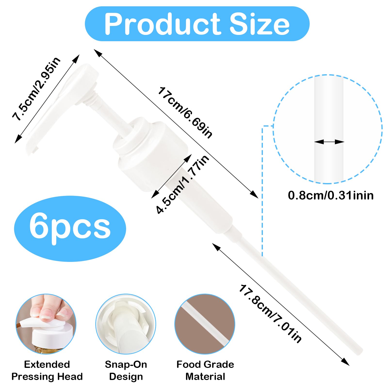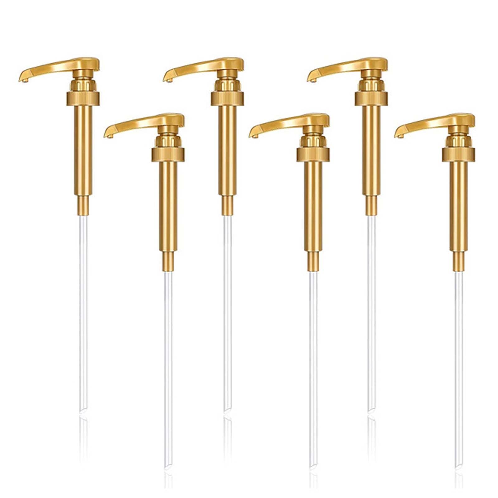 Mach deine Küche oder dein Café professionell mit diesen CHUANFU Sirup Spendern! Im 6er-Set hast du genug Pumpen für alle deine Lieblingssirups in goldener Optik.\n\nJede Pumpe gibt pro Druck genau 8-10 ml Sirup ab - so wird jedes Getränk konsistent und du vermeidest Verschwendung. Perfekt also für Latte Macchiato, Eistee, Cocktails oder selbstgemachte Limonaden!\n\nDie Pumpen passen auf Flaschen mit 25mm Durchmesser (500ml oder 1000ml Standardflaschen). Das lebensmittelechte PP-Material ist geruchsneutral, bruchfest und absolut sicher für Lebensmittel.\n\nReinigen geht einfach: Pumpenkopf und Schlauch lassen sich leicht abnehmen und unter warmem Wasser abspülen. So vermeidest du Sirupkristallisation und Geruchsbildung.\n\nDer ergonomische Griff liegt super in der Hand und ermöglicht einfache Einhandbedienung - selbst bei hohem Andrang kein Problem! Mit den 6 Pumpen kannst du einen ordentlichen Gewürztisch einrichten und sparst dir lästiges Ausgießen und Abmessen.\n\nOb fürs Café, die Hausbar oder die heimische Küche - mit diesen Spendern machst du das Dosieren zum Kinderspiel!