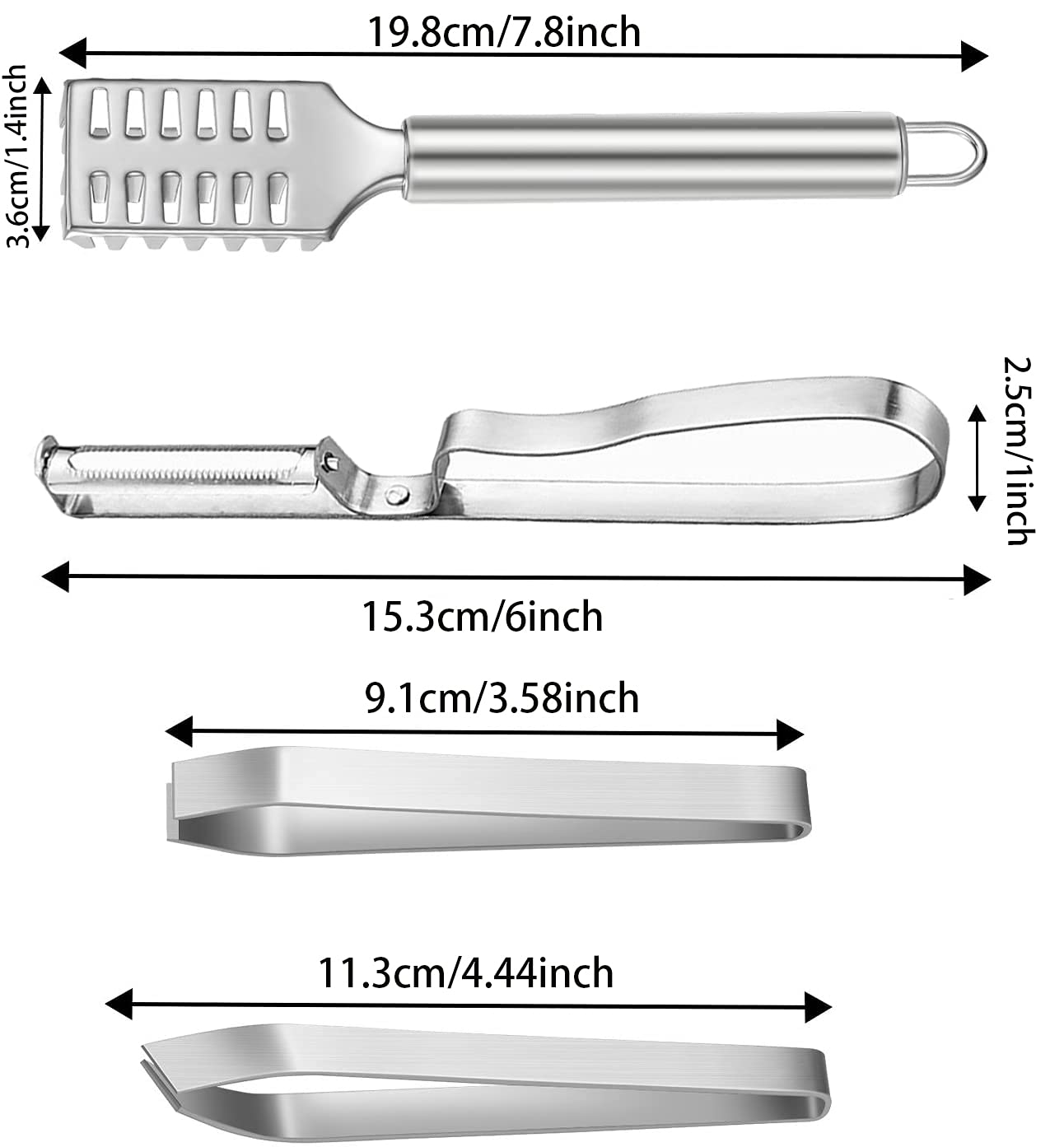 Mit diesem 3-teiligen Fisch Entschupper Set aus Edelstahl macht Fisch zubereiten richtig Spaß! Das komplette Set enthält alles was du brauchst: Einen Fischscaler mit integriertem Messer, einen mit Ingwer-Schleifmaschine und eine praktische Grätenzange. Aus hochwertigem rostfreiem Edelstahl - absolut hygienisch und spülmaschinengeeignet. Die scharfkantigen Edelstahl-Zähne entfernen Schuppen ratzfatz ohne großen Kraftaufwand. Die Grätenzange hilft dir beim präzisen Filetieren und entfernt lästige Gräten. Mit rutschfesten Griffen für sicheren Halt auch bei nassen Händen. Perfekt für Forelle, Lachs, Barsch und viele andere Fischarten. Ob du Angler bist oder einfach nur gerne frischen Fisch zubereitest - mit diesem Set geht alles viel einfacher und sauberer. Kein Chaos mehr in der Küche, keine herumfliegenden Schuppen! Einfach ein professionelles Set das in keiner Küche fehlen sollte wenn man Fisch mag.