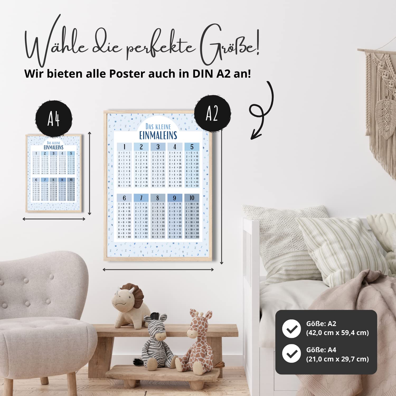 Mathe lernen war noch nie so einfach! Diese beiden bunten Einmaleins-Poster machen Kindern richtig Spaß am Rechnen. Mit den Multiplikations- und Divisionstabellen von 1 bis 12 in großen, klaren Zahlen - perfekt für Grundschüler und Vorschulkinder. Aus hochwertigem, dickem Papier gefertigt und beidseitig laminiert, sind die Poster extrem robust und langlebig. Die glatte Oberfläche ist wasserabweisend und abwischbar - ideal wenn mal was daneben geht. Mit den Maßen 42x29 cm sind sie groß genug, um alles gut lesen zu können, aber nicht zu dominant an der Wand. Gedruckt mit ungiftigen Pflanzenfarben und mit abgerundeten Ecken - absolut sicher für Kinderhände. Flach verpackt kommen die Poster ohne lästige Knicke an und sind sofort einsatzbereit. Perfekt fürs Kinderzimmer, Klassenzimmer oder Homeschooling. Die bunten Farben wecken die Neugier und machen Lust aufs Lernen. Einfach aufhängen und schon wird Mathe zum Kinderspiel - so unterstützt du dein Kind spielerisch beim Lernen!