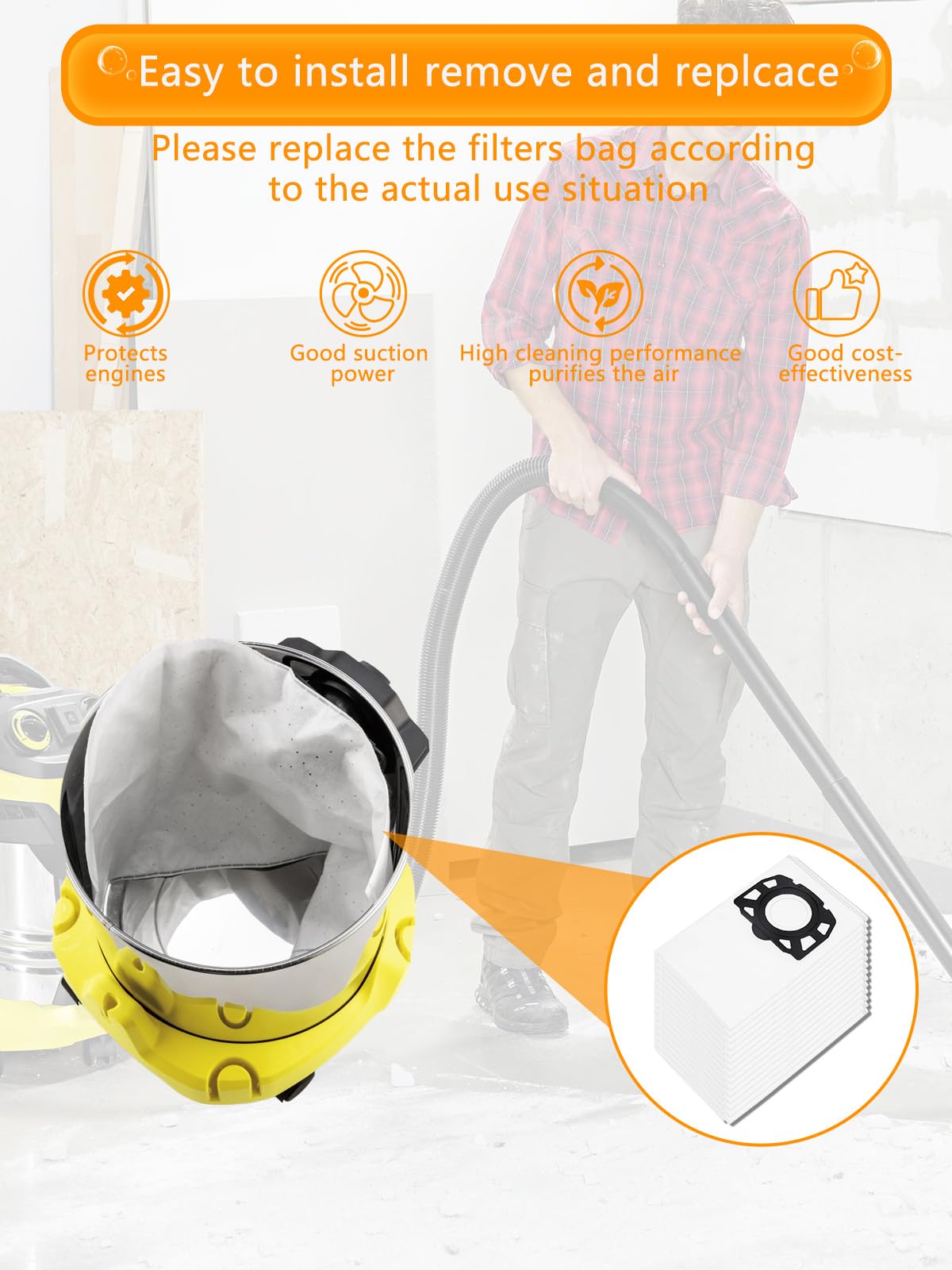 Boah, dieses Sileduove Staubbeutel-Set ist genau das Richtige für deinen Kärcher Staubsauger! Kompatibel mit WD4, WD5, WD6, MV4, MV5, MV6 und vielen weiteren Modellen. Im Set: 6 Staubbeutel + 2 Filter - damit hast du lange Zeit Ersatz! Aus hochwertigem Vlies-Material, das den Staub zuverlässig auffängt und die Saugkraft erhält! Einfach zu installieren - alten Beutel raus, neuen rein, fertig! Verbessert spürbar die Saugleistung deines Staubsaugers! Besonders praktisch bei Renovierungen, in der Werkstatt oder wenn du Haustiere hast! Die Filter sorgen für saubere Abluft - wichtig für Allergiker! Hält deinen Staubsauger länger fit und schützt den Motor! Viel bessere Leistung als No-Name-Produkte - aber zu einem fairen Preis! Einfach mal bestellen und du musst nicht ständig neue Beutel kaufen! Besonders praktisch: Du hast immer Ersatz da, wenn der Beutel voll ist! Ein Muss für jeden Kärcher-Besitzer - Qualität, die überzeugt!
