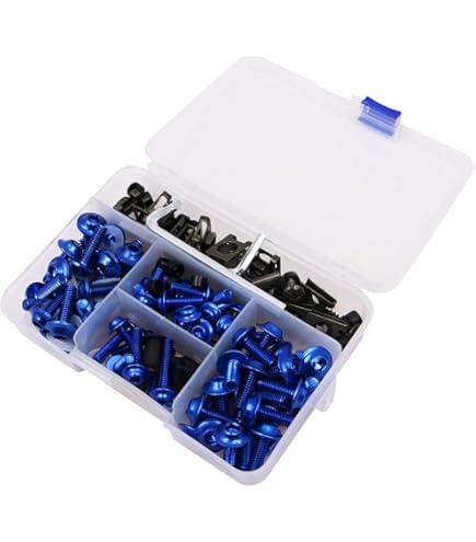 Hey Motorrad-Fans! Dieses komplette Schraubenset ist genau das Richtige für deine Kawasaki Ninja ZX-6R, ZX10R, ZX-14R oder ZZR1400. Aus robustem Aluminium in verschiedenen Farben erhältlich - da findest du sicher deine Lieblingsfarbe! Das Set enthält wirklich ALLES was du brauchst: M6 Schrauben in 40mm, 16mm und 20mm, M5 Schrauben in 16mm und 25mm, selbstschneidende Schrauben, Gummimuttern, Nylon-Unterlegscheiben, Buchsen, Stahl-Schnellklemmen und Verkleidungsklemmen in verschiedenen Größen. Sogar Inbusschlüssel sind dabei! Die Wellmuttern sorgen für ne wasserdichte Abdichtung und reduzieren Vibrationen. Mit der praktischen Aufbewahrungsbox hast du alles immer griffbereit. Einfach dein Motorrad aufpeppen und es mit den bunten Schrauben individualisieren - so wird deine Maschine zum echten Hingucker!