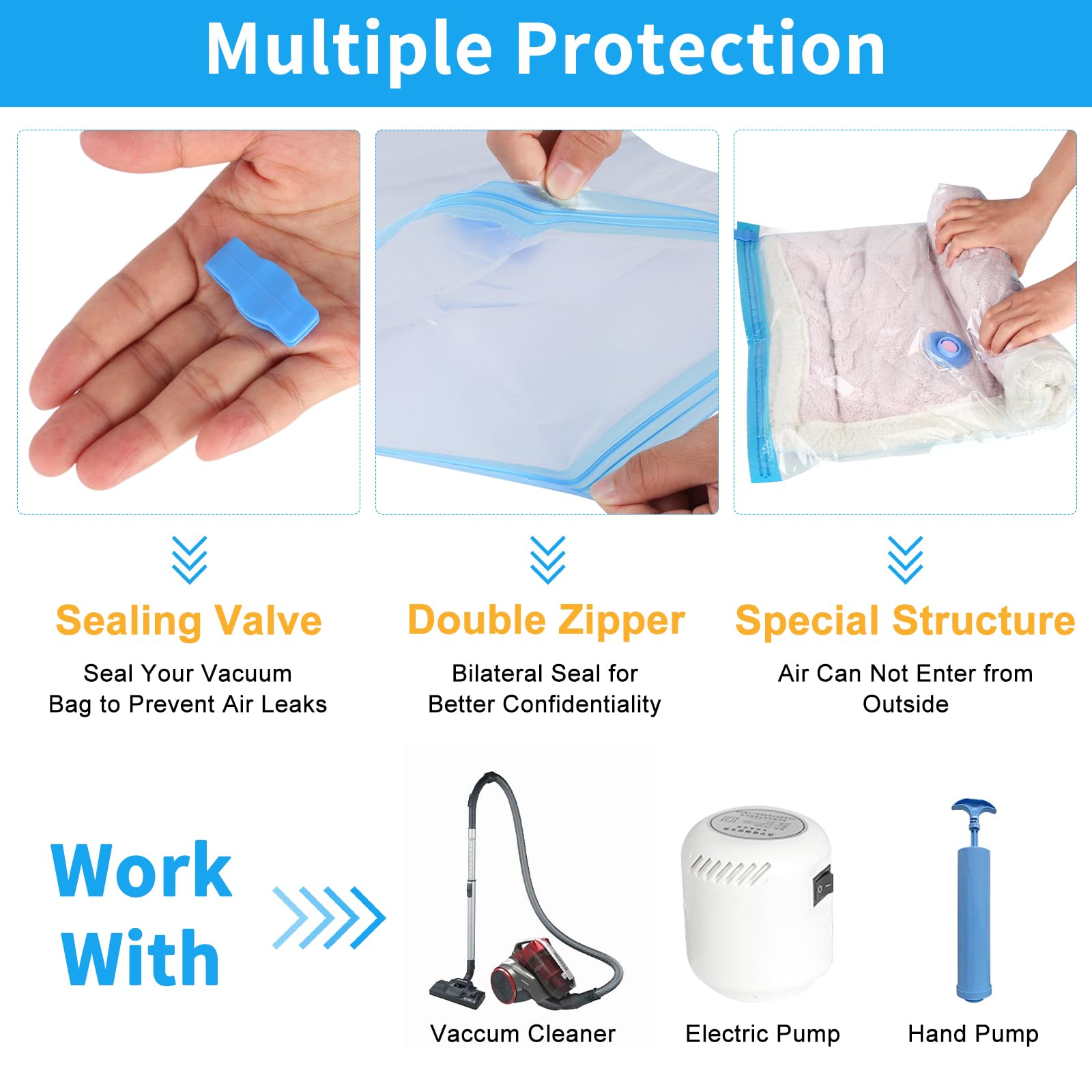 Platzprobleme im Schrank? Dieses 16-teilige Vakuumbeutel-Set ist die Lösung! Mit 4 praktischen Größen (100x80cm, 80x60cm, 60x40cm, 50x30cm) findest du für jede Kleidung den passenden Beutel. Ob dicke Winterjacken, Bettdecken, Kissen oder saisonale Kleidung - einfach rein, Luft raus und schon sparst du bis zu 80% Stauraum! Der robuste Doppelreißverschluss und das Dreifach-Turboventil sorgen für absolute Luftdichtheit - deine Sachen bleiben sicher vor Feuchtigkeit und Staub geschützt. Die Beutel aus reißfestem PA+PE Material halten auch bei intensiver Nutzung problemlos mit. Einfach die Kleidung in den Beutel legen, den Reißverschluss schließen und mit dem beiliegenden Handpumpe oder deinem Staubsauger die Luft absaugen. Perfekt für den Haushalt, Umzüge oder Reisen - so hast du immer alles platzsparend organisiert!