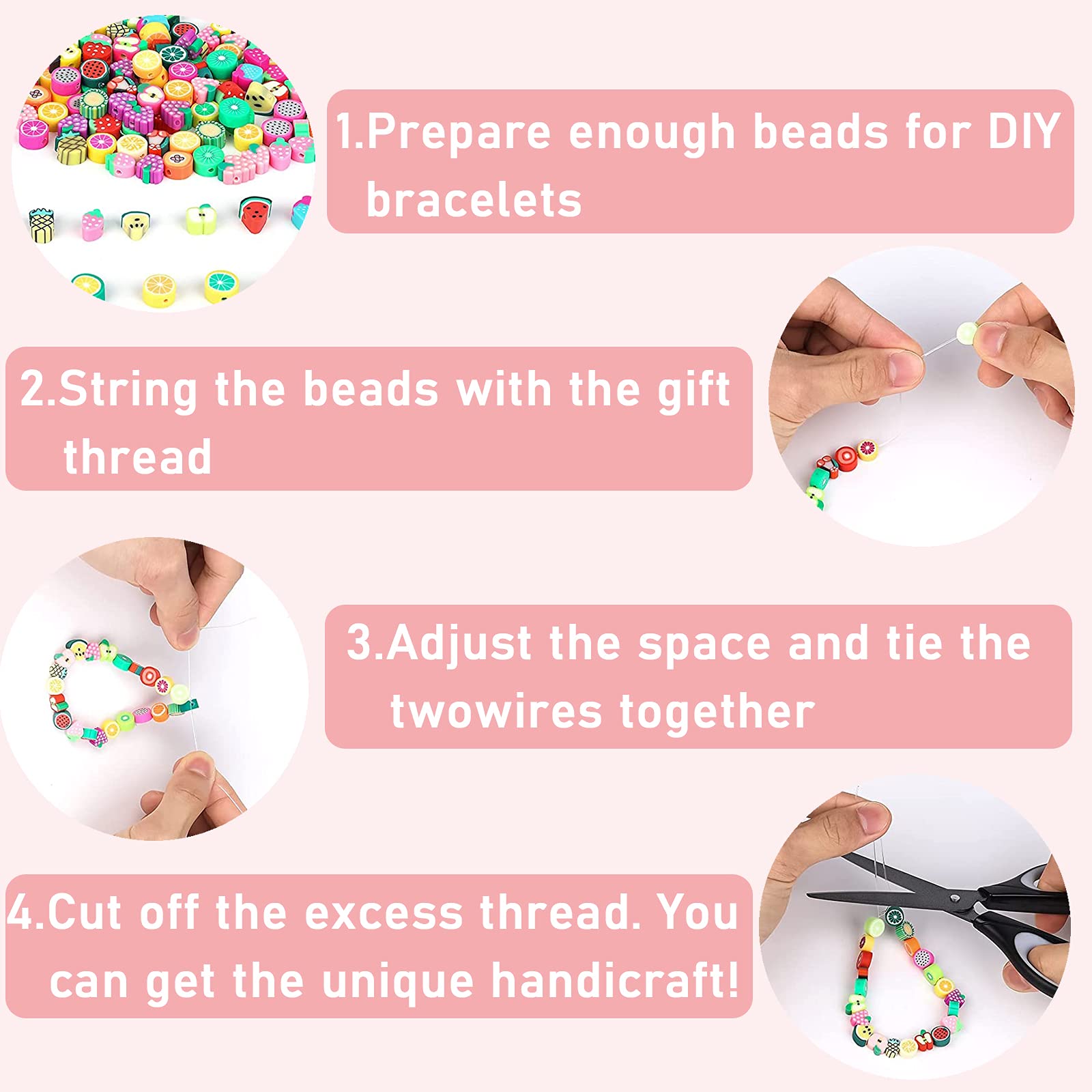 Riesiges Bastel-Set mit 300 süßen Obst-Perlen! Enthält über 10 verschiedene Frucht-Motive wie Erdbeeren, Wassermelonen, Orangen und Ananas in bunten Farben. Größe: 0,7-1,2 cm Durchmesser mit 0,2-0,24 cm Löchern - perfekt für Elastikfäden. Aus weichem Ton-Material, hautfreundlich und farbecht. Ideal für Armbänder, Halsketten, Schlüsselanhänger oder Haar-Accessoires. Super für Kindergeburtstage, Schulprojekte oder kreative DIY-Abende. Alles in einer Packung - genug für viele schöne Kreationen. Lass deiner Kreativität freien Lauf!