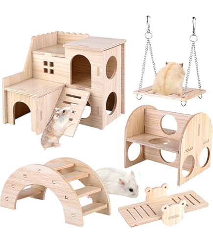 Dein Hamster wird verrückt spielen vor Freude! Dieses 2er Set aus massivem Kiefernholz besteht aus zwei verschiedenen Futterspendern: einer mit Deckeln (17x6x7cm) und einer mit Schubladen (17x6x3.5cm). Die extra tiefen Fächer wecken den natürlichen Forschungsdrang deines kleinen Freundes. Mit stabilen Seilen und sauber verarbeiteten Deckeln - alles sicher und langlebig. Perfekt zum Klettern, Verstecken und für Leckerbissen. Fördert die Aktivität und geistige Anregung deines Hamsters, Kaninchens oder anderen Kleintiers. Einfach mit Futter befüllen und zuschauen, wie dein Tierchen voller Eifer erkundet! Macht nicht nur Spaß, sondern ist auch gut für die Gesundheit. Dein Haustier wird es dir danken!