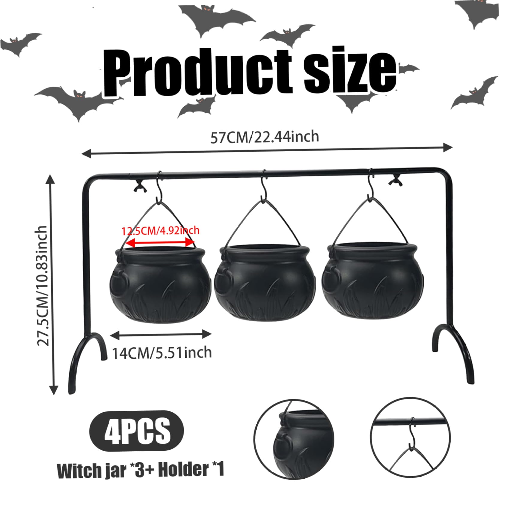 Alter, diese Hexenkessel-Schalen sind ja mal der absolute Hammer für Halloween! Das 3er-Set in schwarz sieht richtig gruselig aus und bringt perfekte Halloween-Stimmung in dein Zuhause. Aus hochwertigem ABS-Material sind sie sicher und langlebig - da geht nichts kaputt. Jeder Kessel hat etwa 14 cm Durchmesser und hängt an stabilen Metallgestellen. Perfekt um Süßigkeiten für 'Süßes oder Saures' zu servieren, aber auch für Snacks, Chips oder andere Leckereien auf deiner Halloween-Party. Die schwarze, glänzende Oberfläche sieht einfach mega aus und die Gestelle stehen super stabil. Ob auf dem Tisch, Kaminsims oder als Deko im ganzen Haus - damit ziehst du garantiert alle Blicke auf dich. Auch ein tolles Geschenk für Halloween-Fans oder um selbst die Grusel-Stimmung perfekt zu machen. Einfach aufstellen, mit Süßigkeiten füllen und dich über die gruselige Atmosphäre freuen!